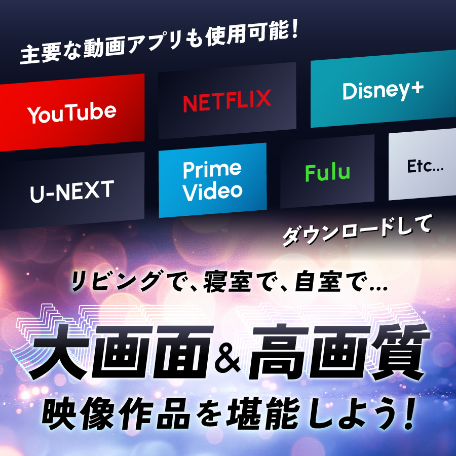 Android 13を搭載し、アプリの利用やミラーリング・HDMI接続による映像入力が可能。