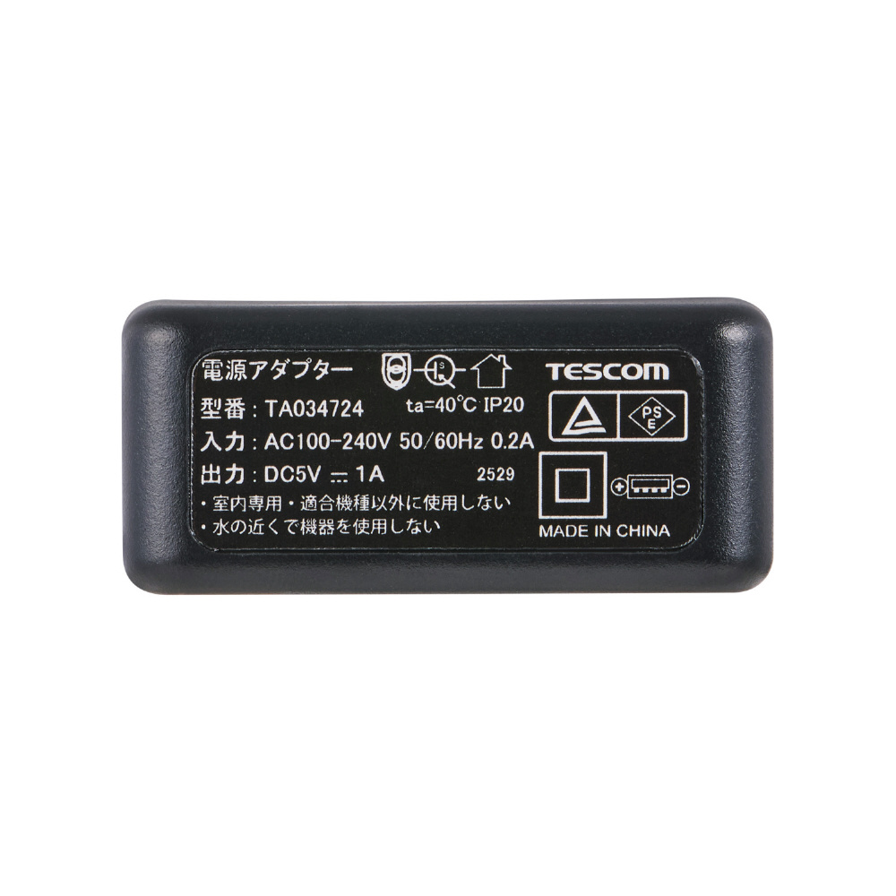 電源アダプターが付属しています。コンセントに挿してすぐに使えます。