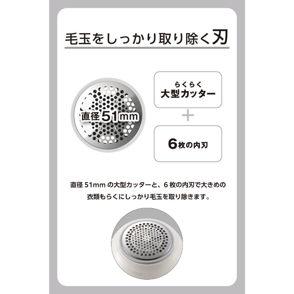 51mmの大型カッターと、6枚の内刃が毛玉を逃さずしっかり取り除きます。