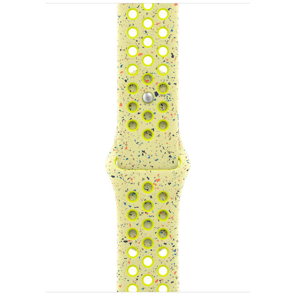 圧縮成形された通気穴で通気性を確保して作られたNikeスポーツバンドは、耐久性が高くて強靭。それなのに驚くほどソフト。カラフルなフレークがランダムなパターンを生み出し、一本一本に際立った個性を与えています。柔軟で高密度な素材があなたの手首を上品に包み込み、快適に肌になじみます。バックルはアルミニウムピンをはめ込むデザイン。「Run」とスウッシュのロゴが丁寧にエッチングされ、ピンにはフレッシュなマット仕上げが施されています。