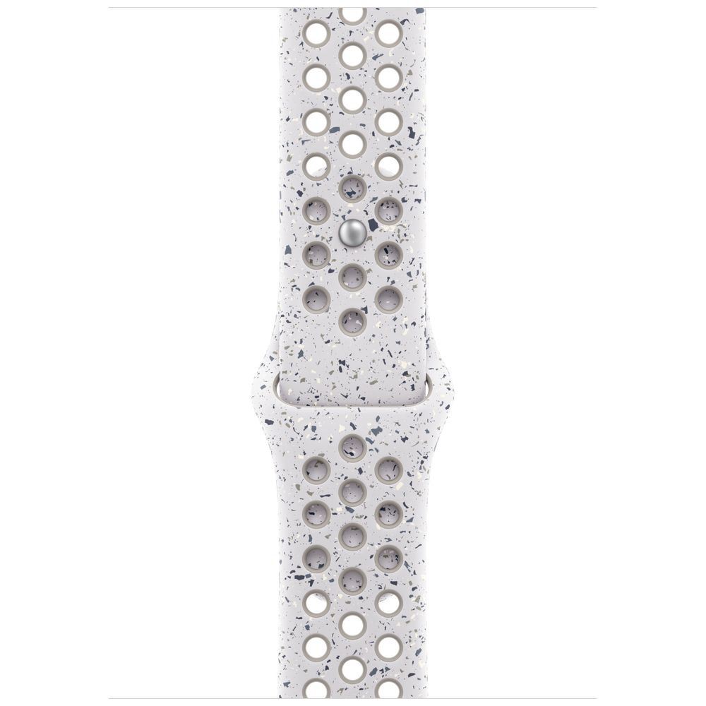 圧縮成形された通気穴で通気性を確保して作られたNikeスポーツバンドは、耐久性が高くて強靭。それなのに驚くほどソフト。カラフルなフレークがランダムなパターンを生み出し、一本一本に際立った個性を与えています。柔軟で高密度な素材があなたの手首を上品に包み込み、快適に肌になじみます。バックルはアルミニウムピンをはめ込むデザイン。「Run」とスウッシュのロゴが丁寧にエッチングされ、ピンにはフレッシュなマット仕上げが施されています。