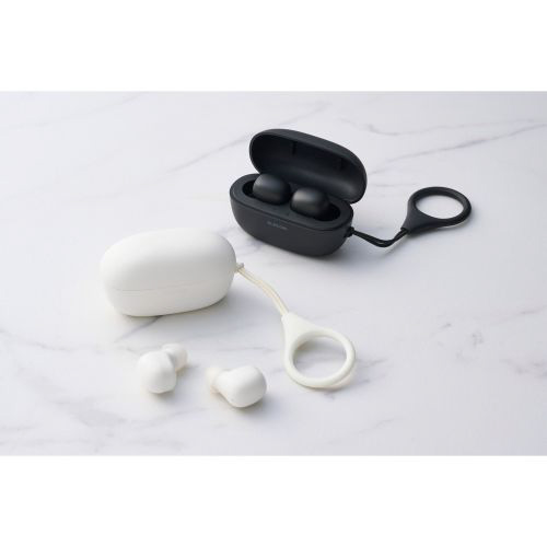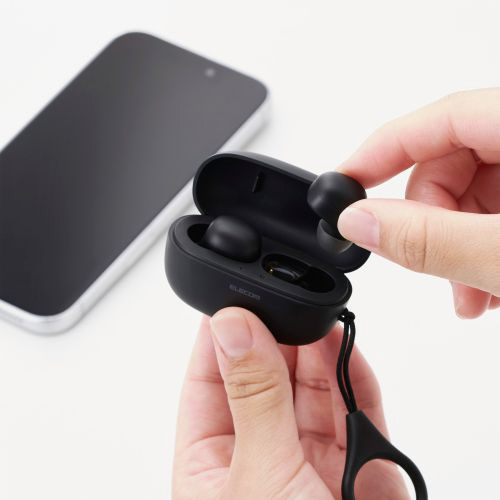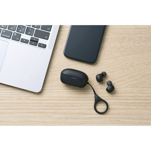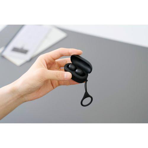 超ミニサイズ&軽量!どこでも持ち運べる完全ワイヤレスヘッドホンです。手のひらにすっぽり収まる超ミニサイズと超軽量設計で、ポケットやミニバッグなどにも余裕で収納できます。リングストラップ付きでかばんの中でも見つけやすく、持ち運びに便利です。