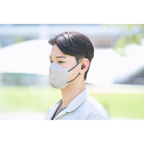 ヘッドホンは出っ張りが少ない形状なので、マスクや髪に引っかかりにくく、スマートに装着できます。