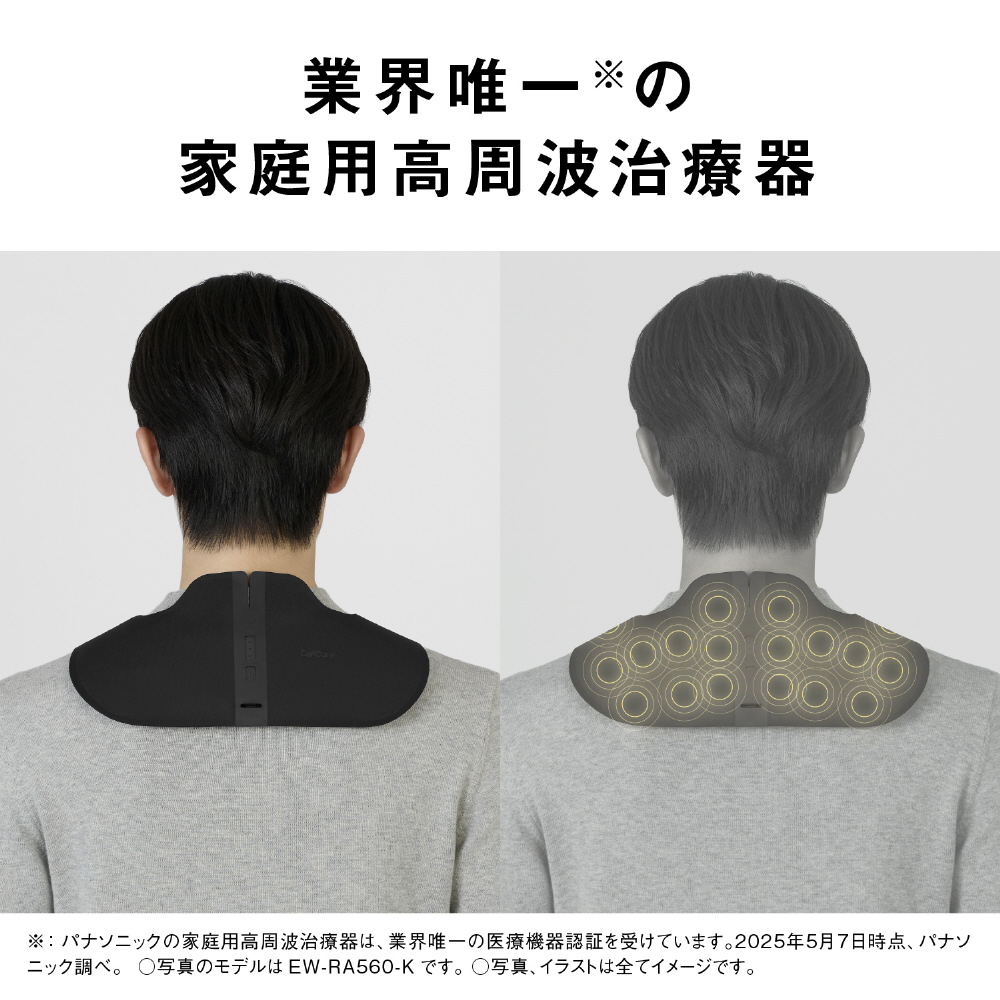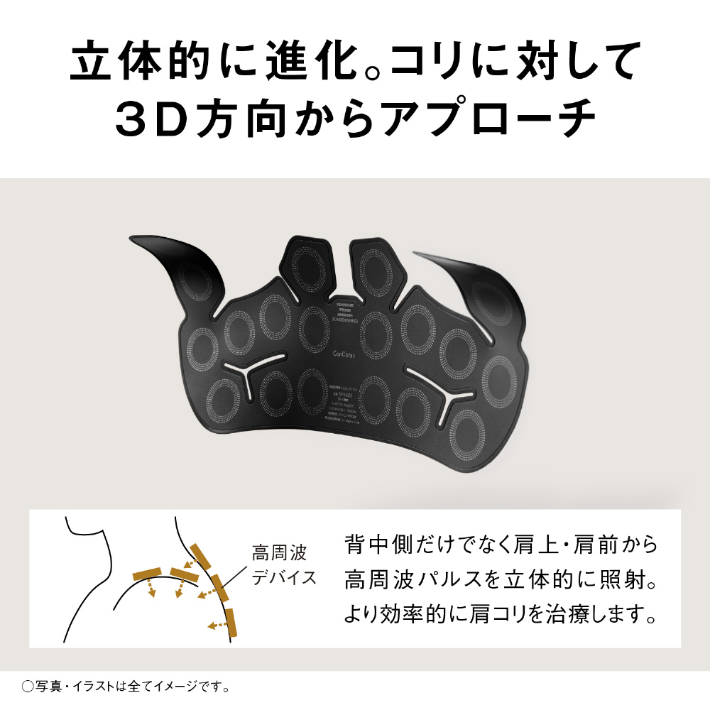 ・背中側だけでなく肩上、肩前から高周波パルスを立体的に照射。より効率的に肩コリを治療