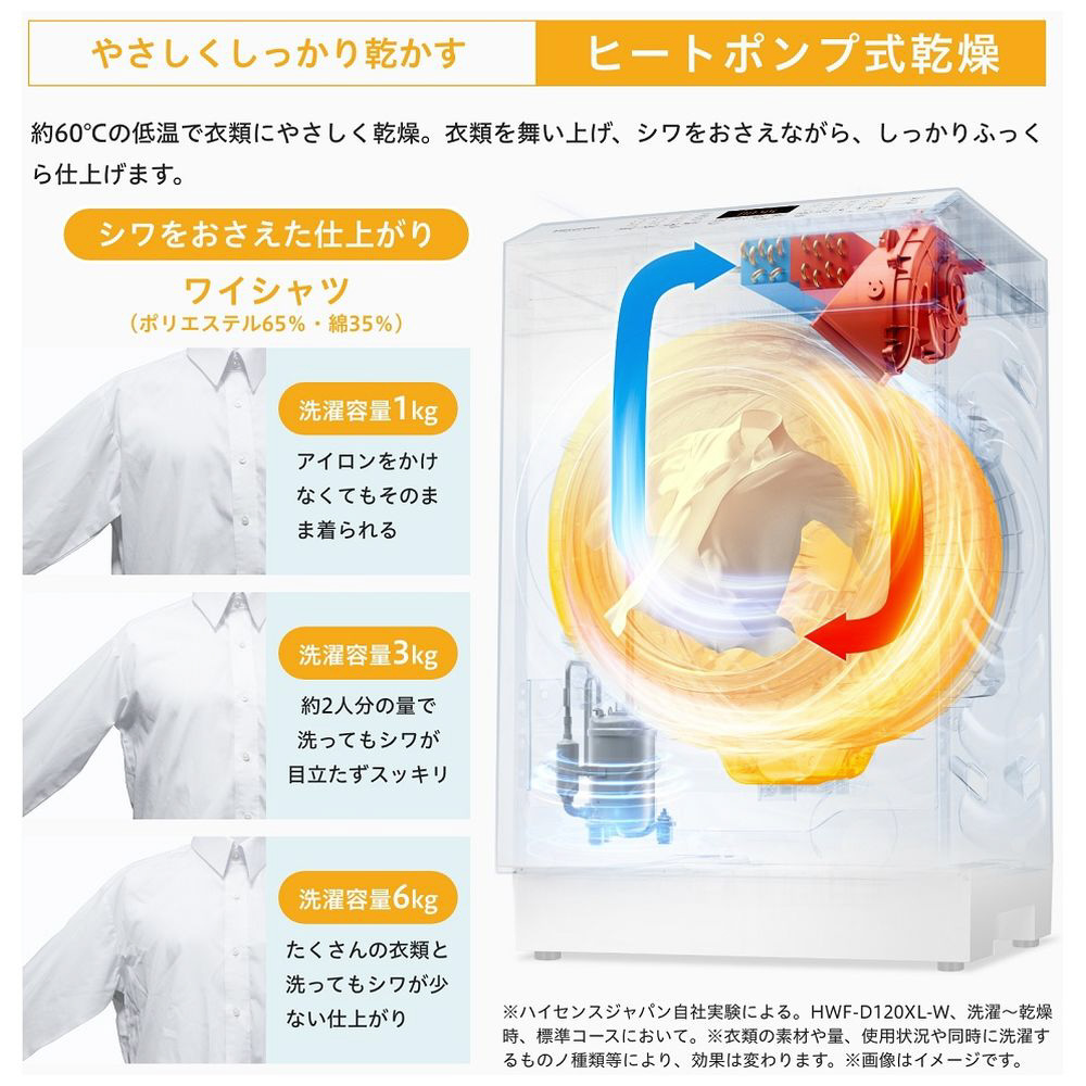 ドラム式洗濯機  ホワイト HWF-D120XL-W [洗濯12.0kg /乾燥6.0kg /ヒートポンプ乾燥 /左開き]