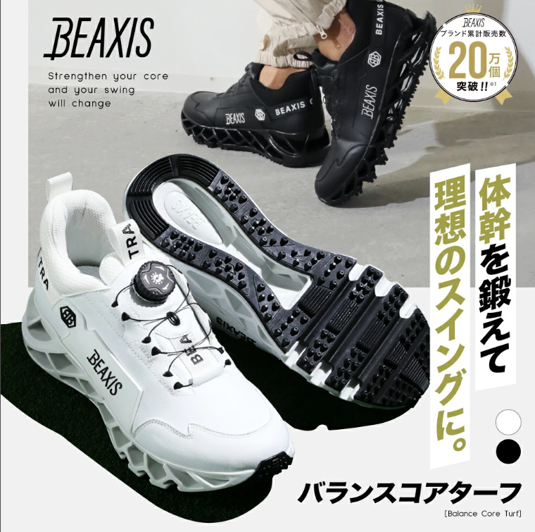 改良された特許取得済インソールはもちろん、低重心へ導く「ちょい重」仕様で、体幹を鍛えて安定感あるフォームへ。効率が良く再現性の高いパワフルなスイングをサポートします。