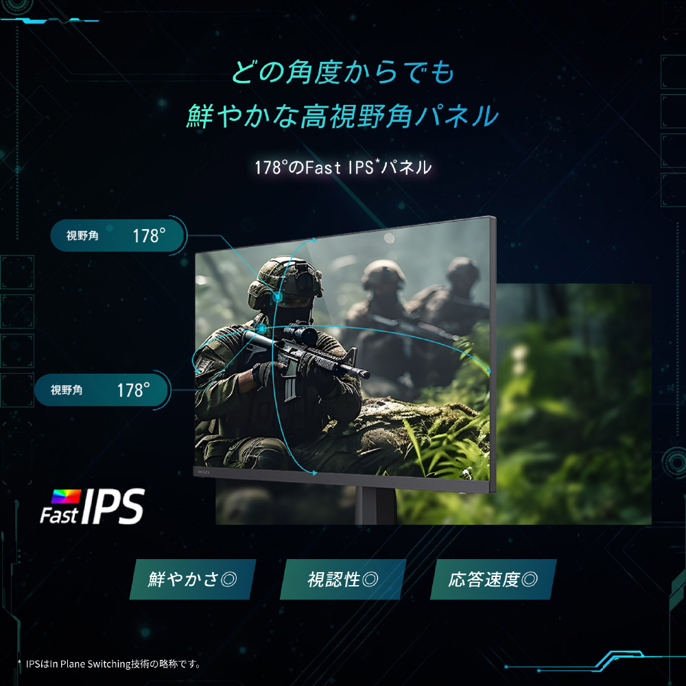 広視野角のFast IPSパネルと高リフレッシュレートで