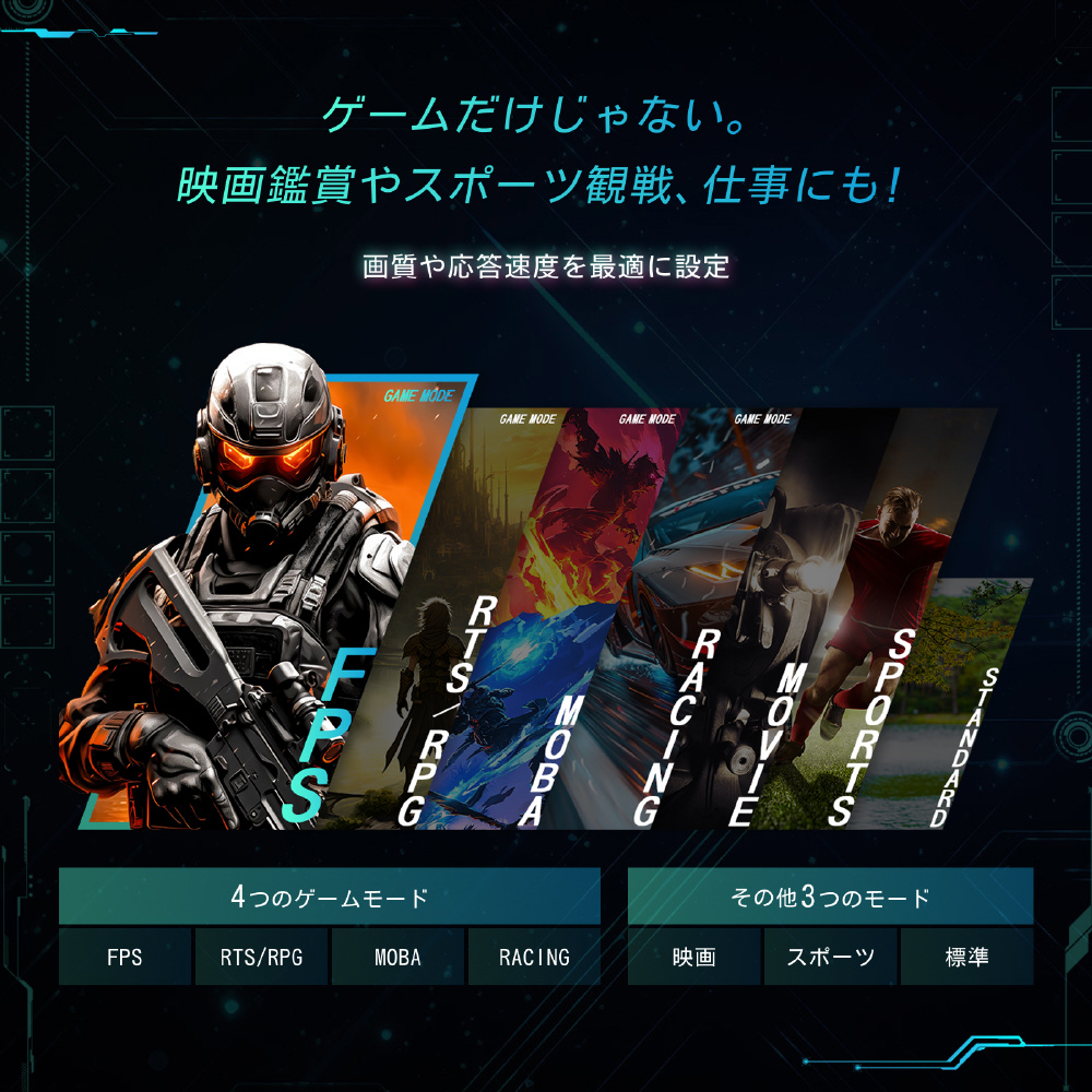 画質や応答速度を最適に設定し、ゲームだけではなく、映画鑑賞やスポーツ観戦などもお楽しみいただけます。