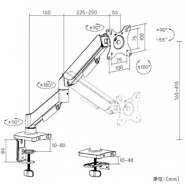 [取付可能天板厚]10〜80mm(クランプ式)、10〜48mm(グロメット式)