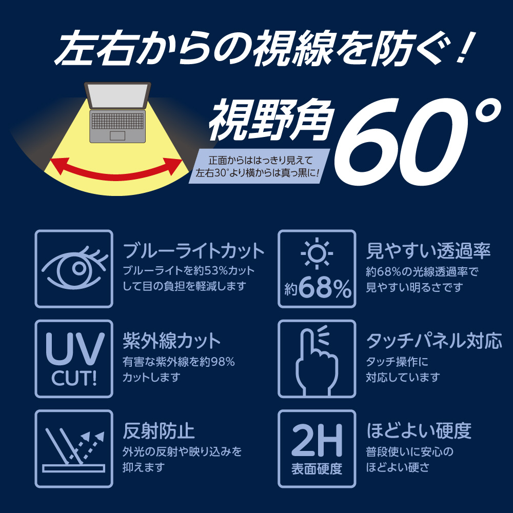 フィルタ内のルーバーが画面の発光方向を正面にコントロール。