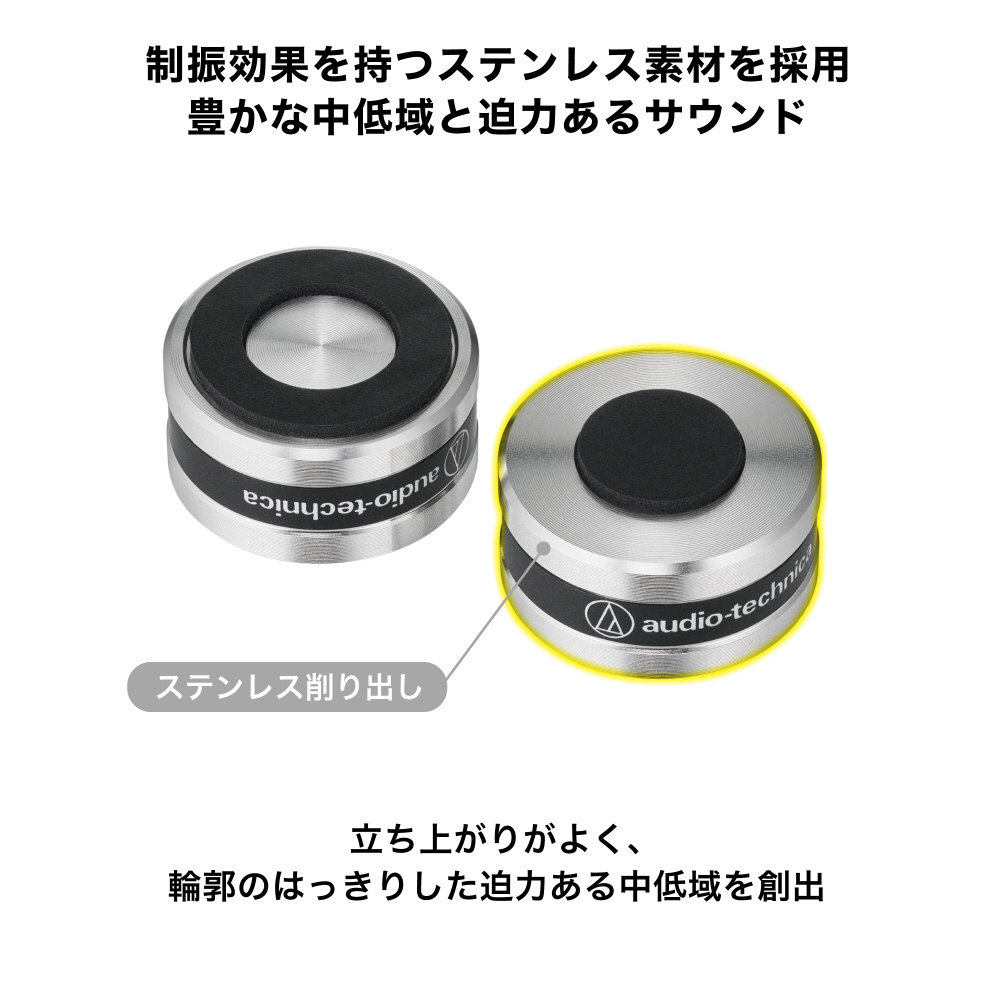 オーディオ機器の底面に置くだけで音質を向上。ステンレス削り出しのハイブリッドインシュレーター