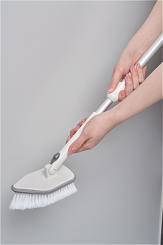 柄が伸びて天井等の高いところも楽に洗えるロングタイプの伸縮バスブラシ。