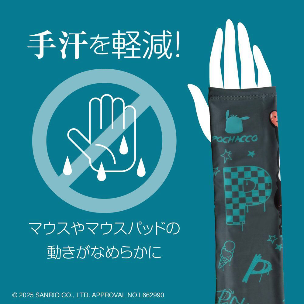 大好評の第一弾「クロミ」「シナモロール」「マイメロディ」につづき、リクエストの多かった「ハローキティ」「ポチャッコ」「ポムポムプリン」「ハンギョドン」のアームカバーが登場!