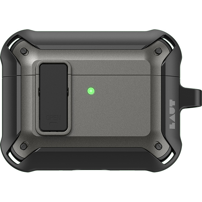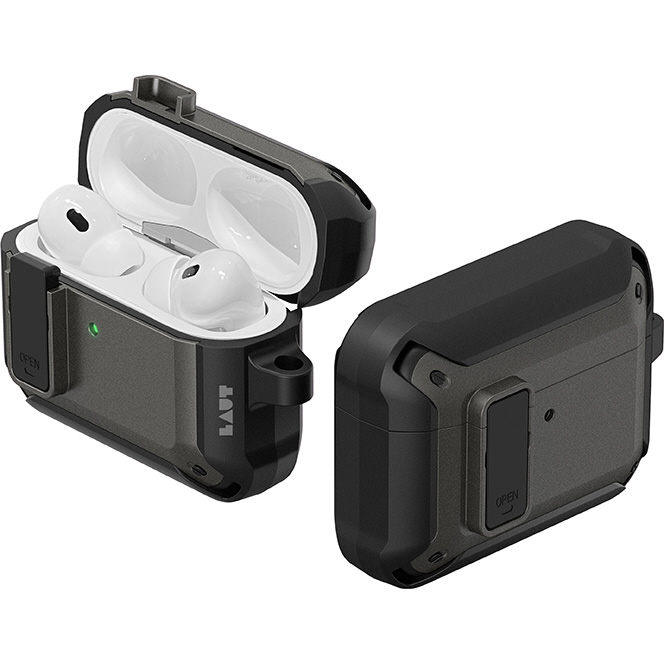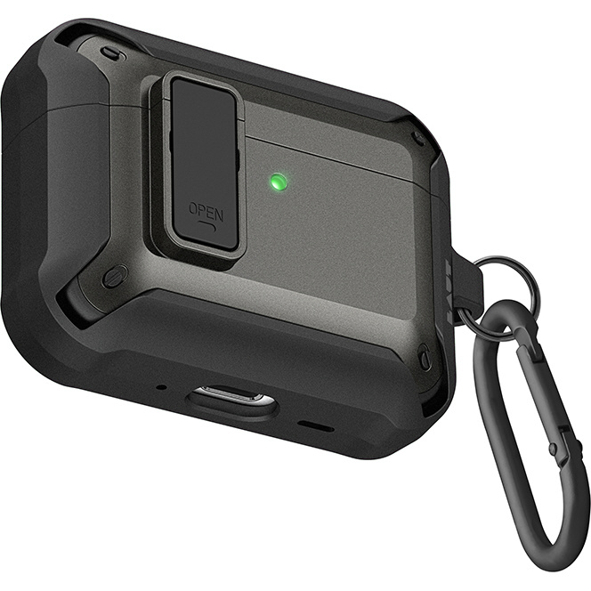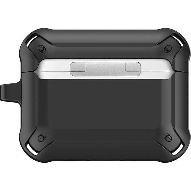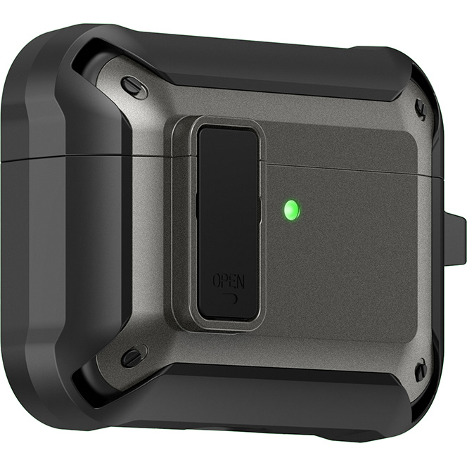 内蔵のセーフティロックは、AirPodsケースが誤って開くのを防ぎ、AirPodsをしっかりと固定します。