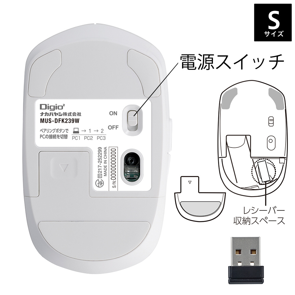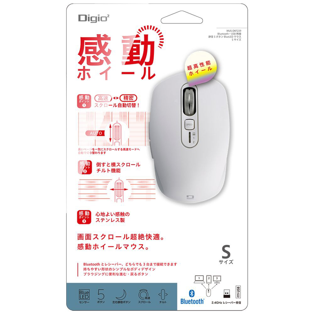 マウス Sサイズ(Chrome/iPadOS/iOS/Mac/Windows11対応) ホワイト MUS-DKF239W [BlueLED /無線(ワイヤレス) /5ボタン /Bluetooth・USB]