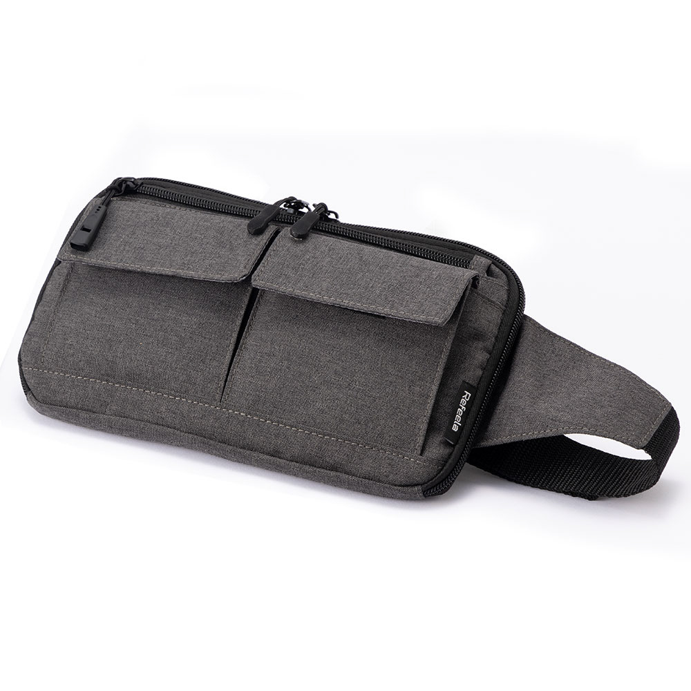 Refeela スキミング防止薄型ウエストポーチ BKヘザー