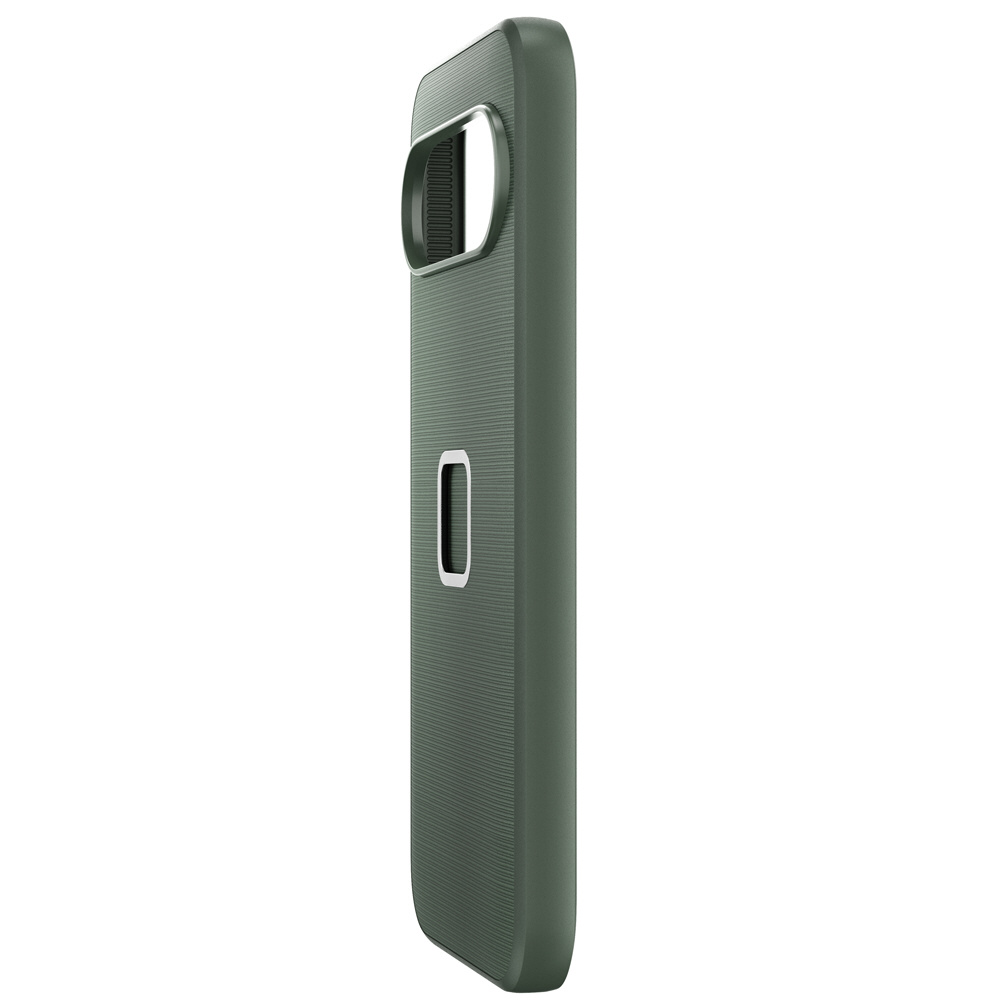 ケース本体は丈夫で軽いポリカーボネート素材で、表面にはシックな色合いの100%リサイクルナイロンキャンバス生地「Versa Shell(TM)」(チャコール、セージ)と、肌触りの良い人工皮革「クラリーノ(TM)」(ブラック、タン)を採用。フレームにはTPU素材を使用し、衝撃吸収にも優れています。