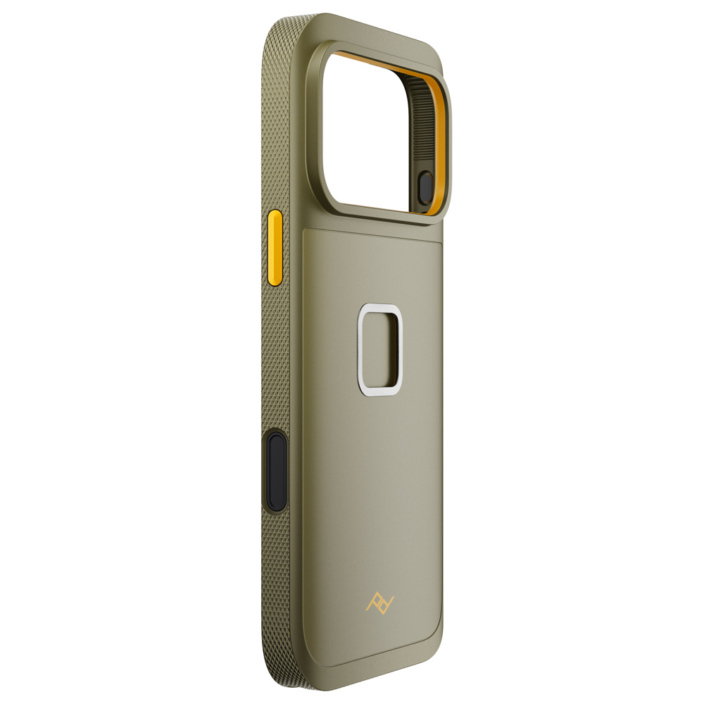 背面にピークデザイン独自のSlimLink(TM)システムを備え、関連アクセサリーを取り付けられます。本体は丈夫で軽量な100%リサイクルのポリカーボネート素材で、表面は傷や汚れに強い仕上がりです。フェアトレード認証取得製品。