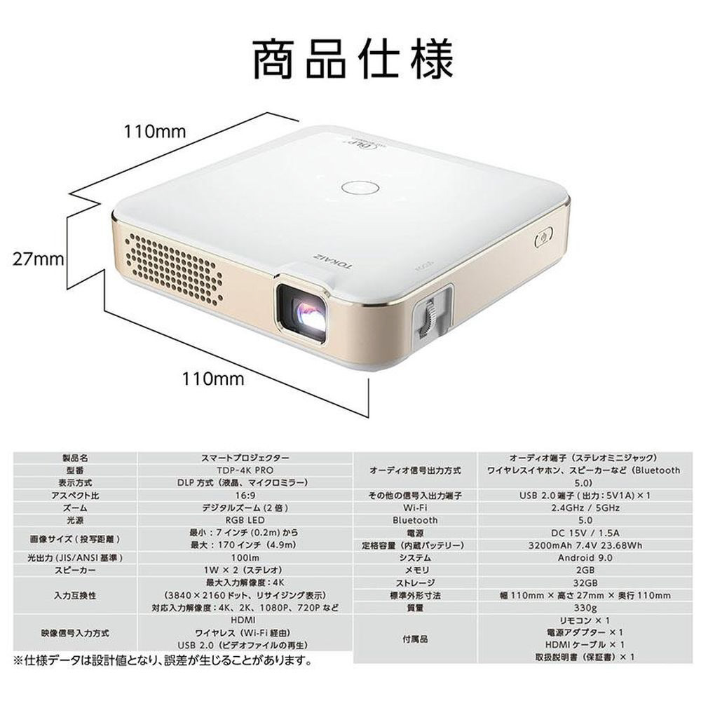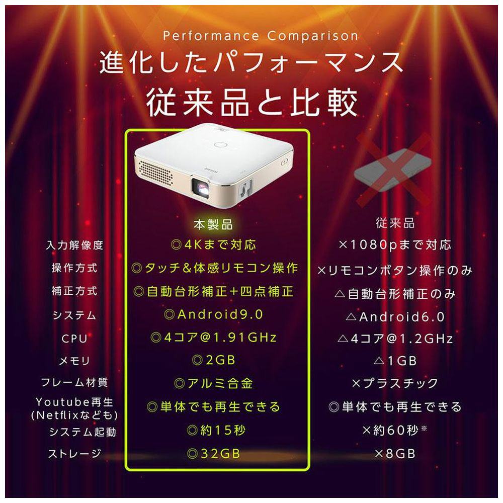 コンパクトながらパワフル。コードレス使用も可能で、4K映像を高画質で楽しめる次世代スマートプロジェクターです。