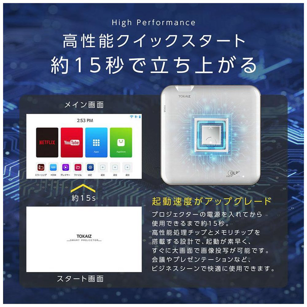 4コアCPU&メモリー2GB搭載の高性能スマートプロジェクター。タッチ操作対応で4K・3Dも楽しめ、100ANSIルーメンの明るさでPS5やSwitchも投影可能。天井投影にも対応し、ギフトやプレゼントにも最適!