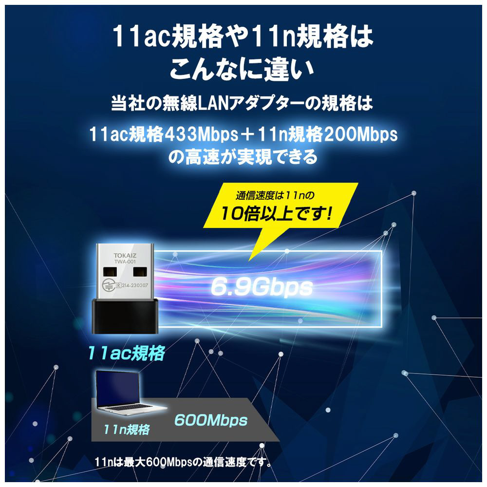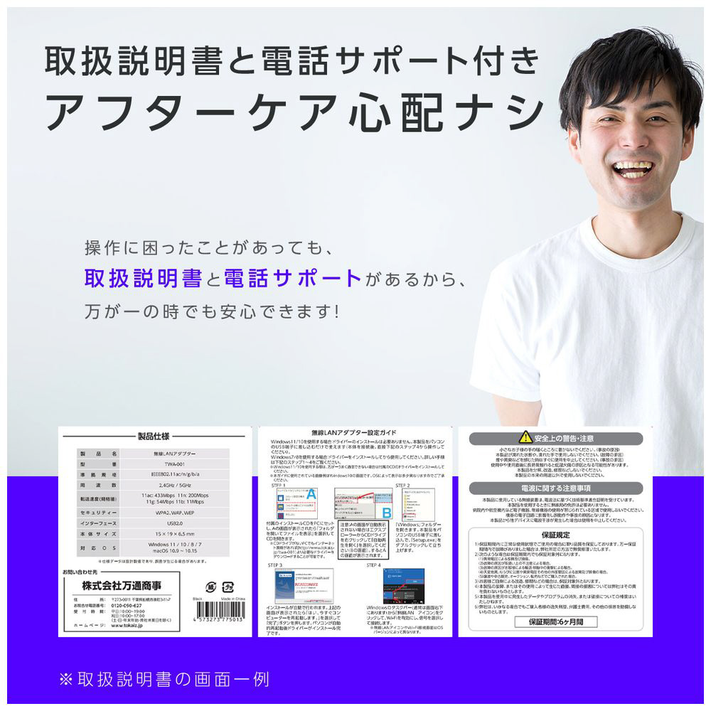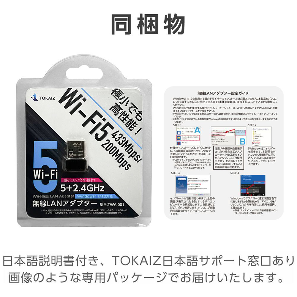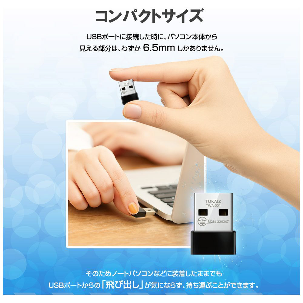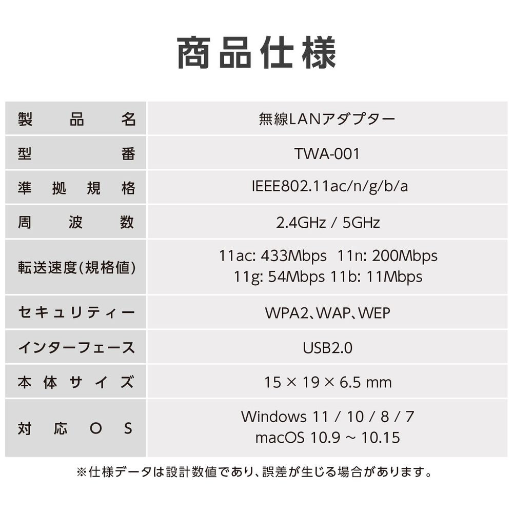 TWA-001 無線LAN子機 USB-A接続 433Mbps+200Mbps (Windows11対応) [Wi-Fi 5(ac) /IPv6非対応]