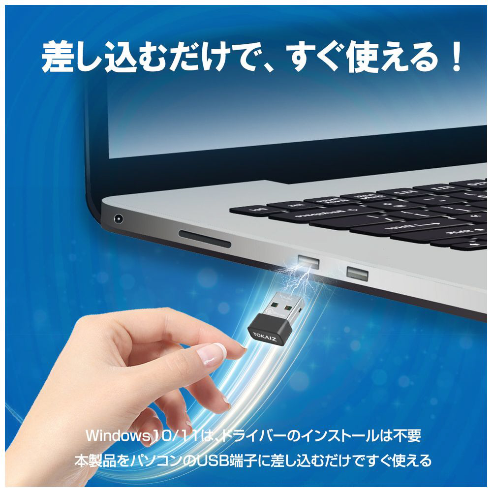 超小型なのに高速!AC600対応Wi-Fi5アダプターで、2.4GHz/5GHzどちらも快適接続。ノートPCもデスクトップもサクサク通信。