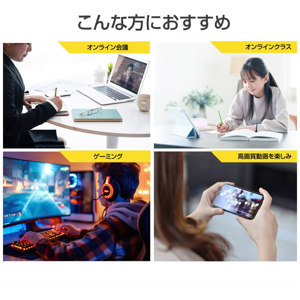 2.4GHzは遠距離や障害物に強く、5GHzは家電との干渉を軽減して安定通信を実現。シーンに合わせて最適な通信環境を選べます。