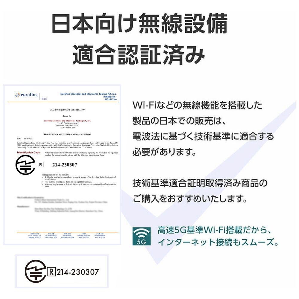 電波法に基づく技術基準適合証明(技適)取得済み。日本国内で安心してご使用いただけます。