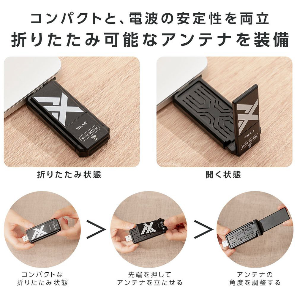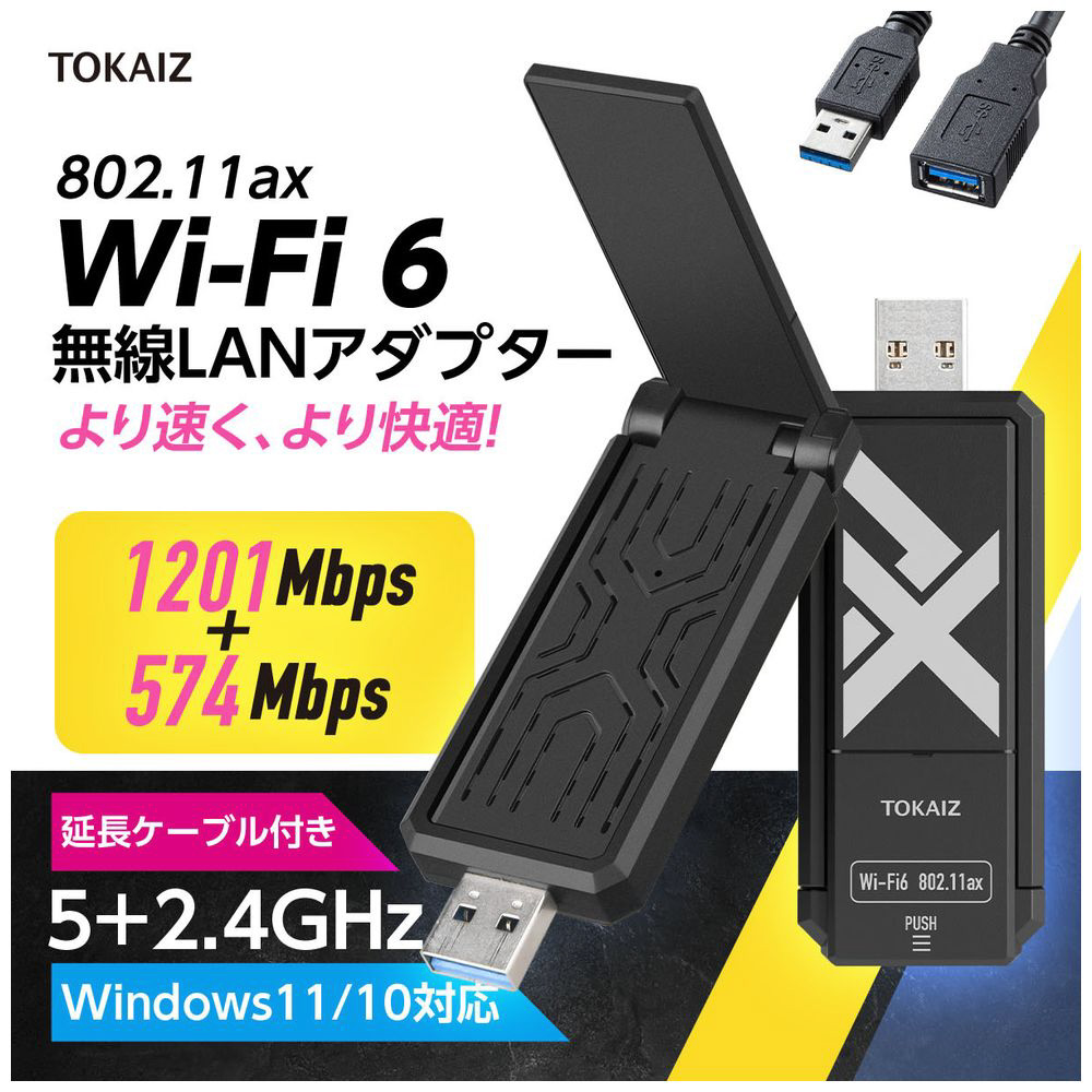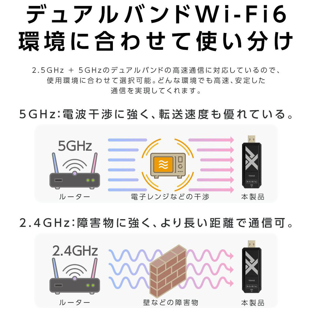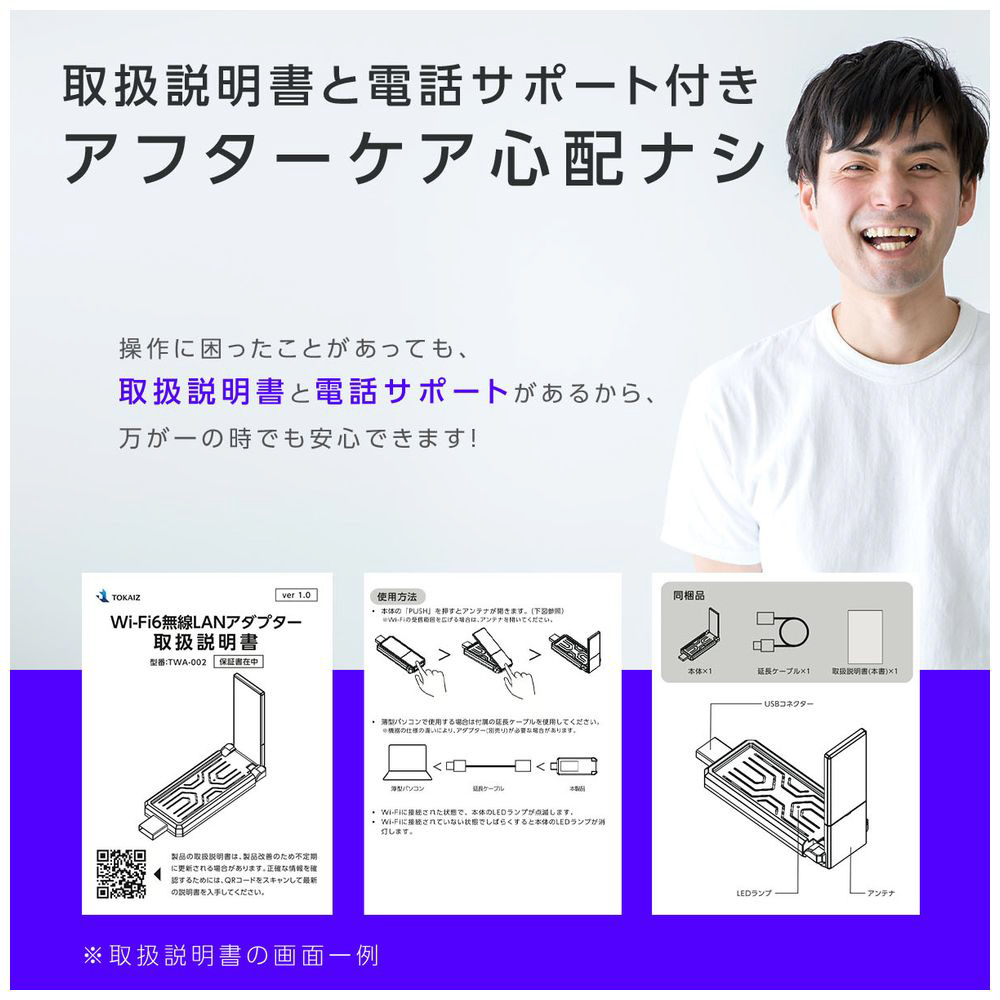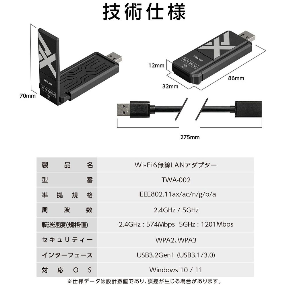 TWA-002 無線LAN子機 USB-A接続 574Mbps+1201Mbps (Windows11対応) [Wi-Fi 6(ax) /IPv6非対応]