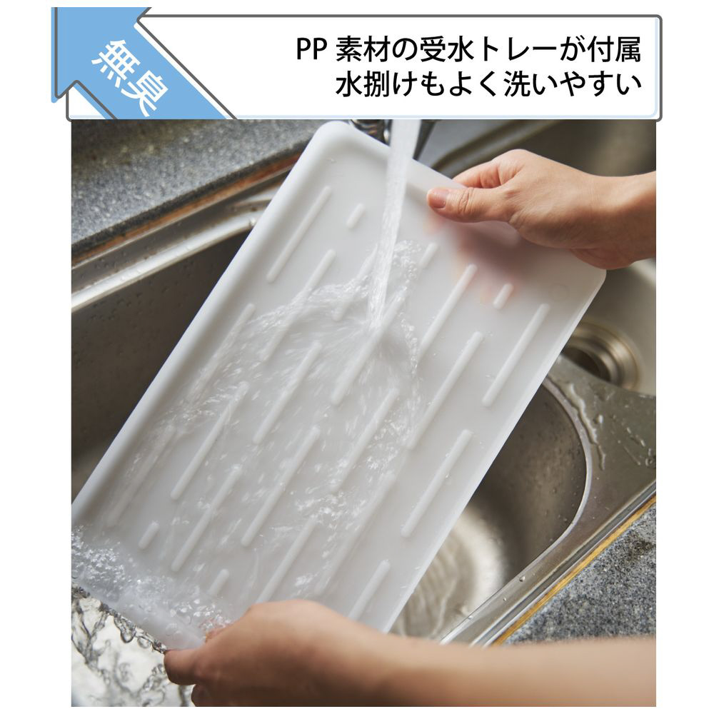 解凍時に出るドリップは付属トレーに流れる設計。食材の美味しさを逃さず、後片付けも簡単です。