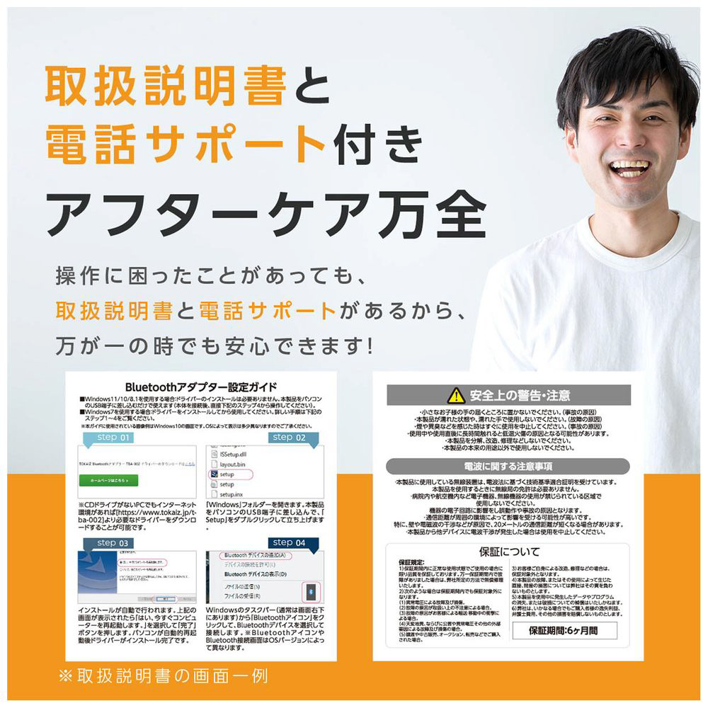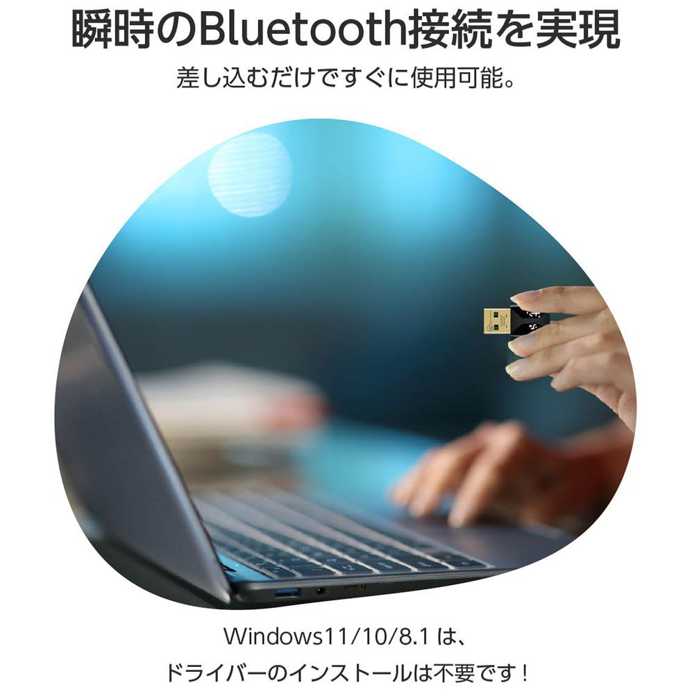 Windows11/10/8.1ならドライバー不要。USBポートに差し込むだけで、すぐにBluetooth接続が可能です。