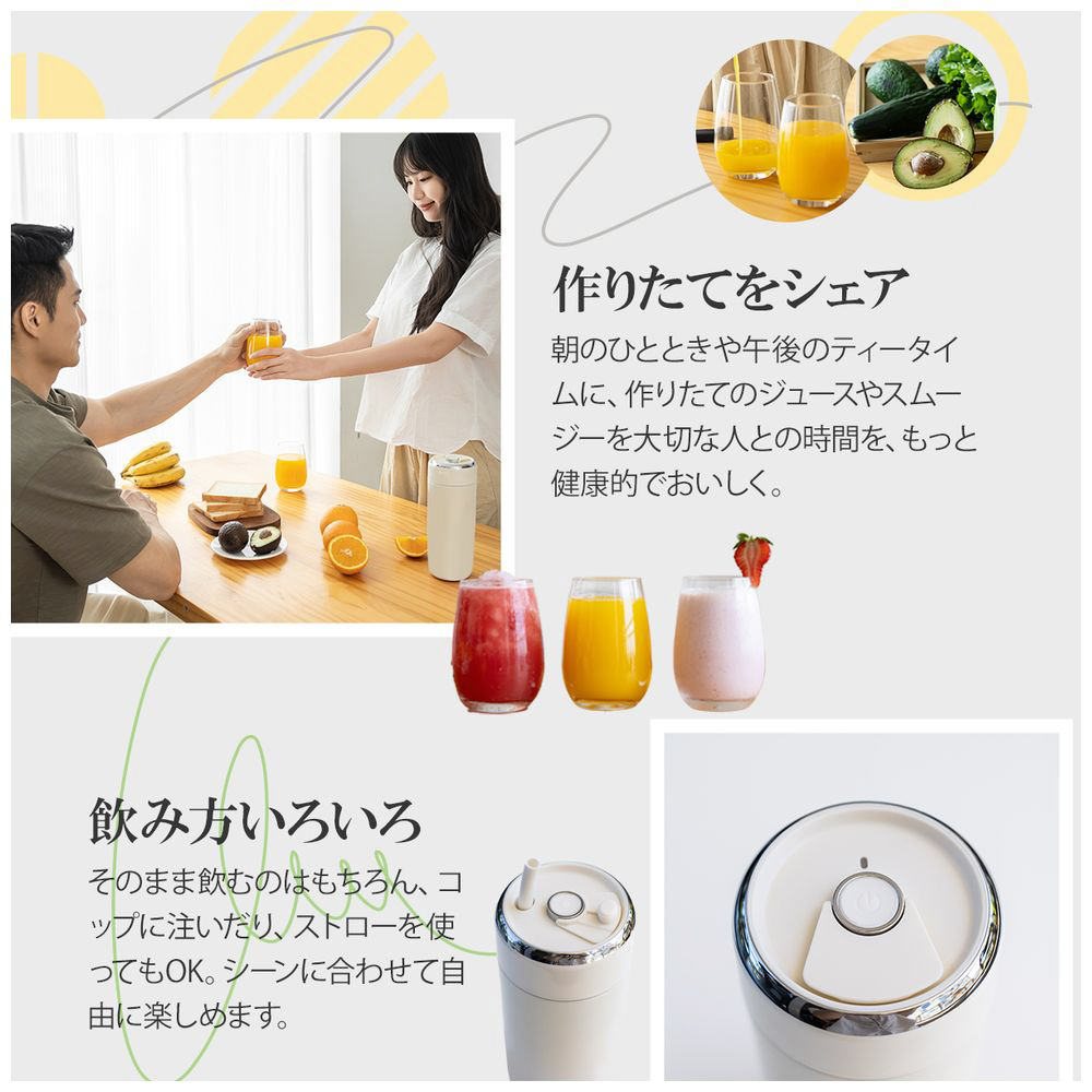 スムージーを作ったらすぐにそのまま飲める仕様。ストローでも直飲みでもOKの快適設計です。