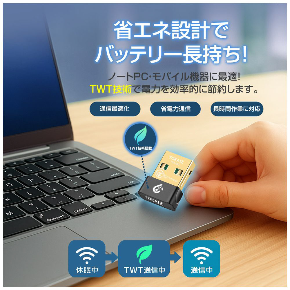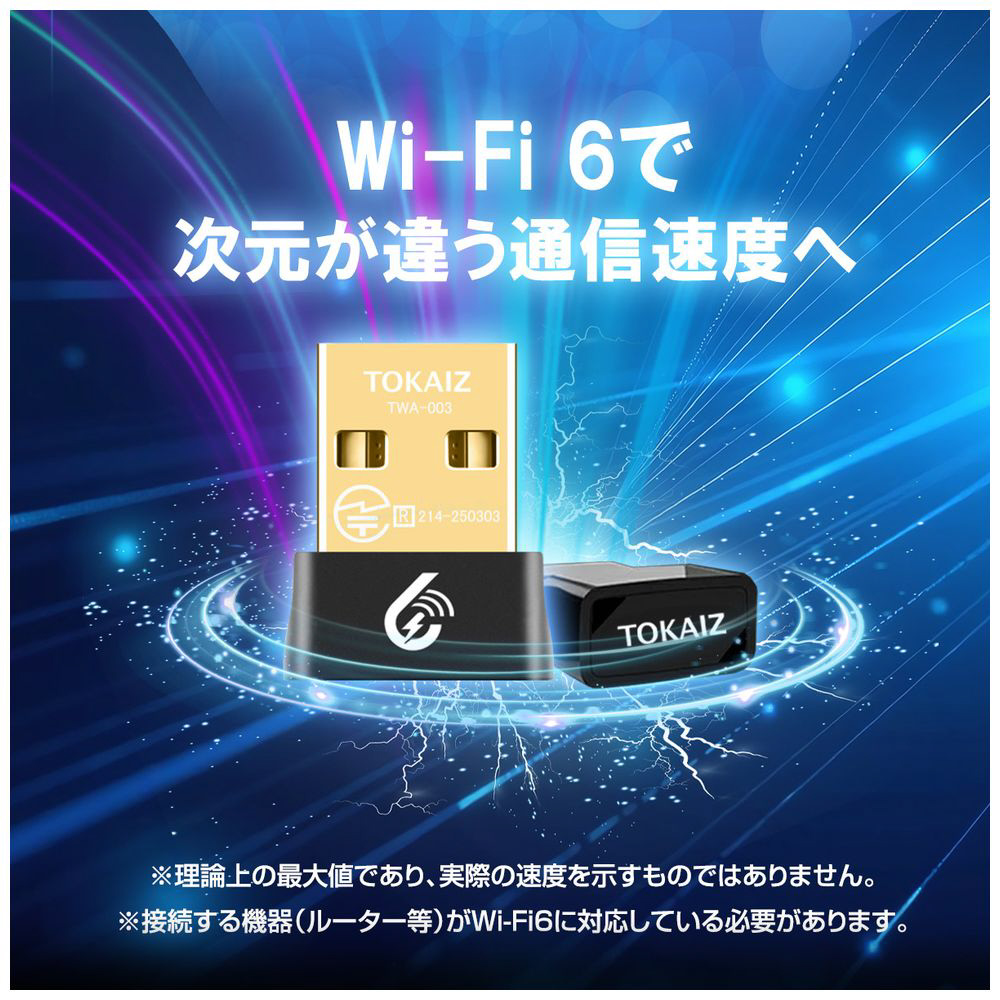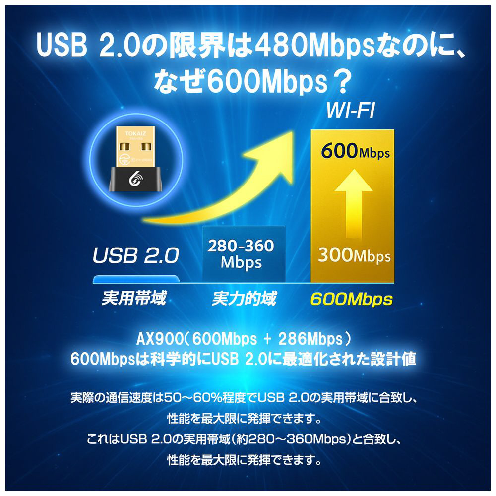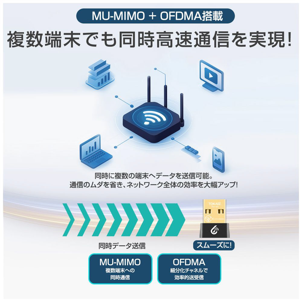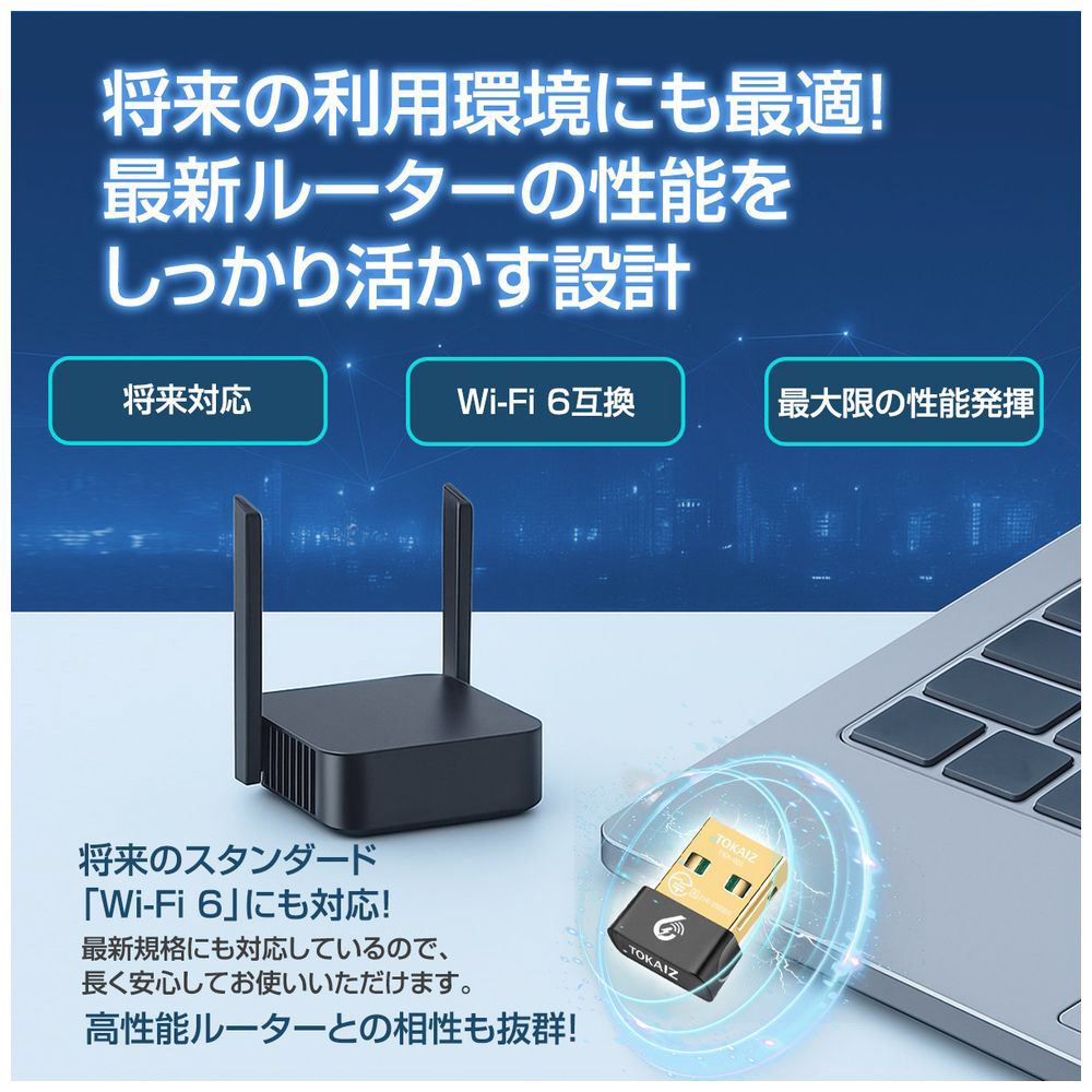 超小型ながら高速600Mbps+286Mbps、2.4GHz+5GHz対応でAX Wi-Fi6サポート。無線設備適合認証済み&日本語説明書付き、コンパクトで持ち運びにも便利なWi-Fiアダプター。