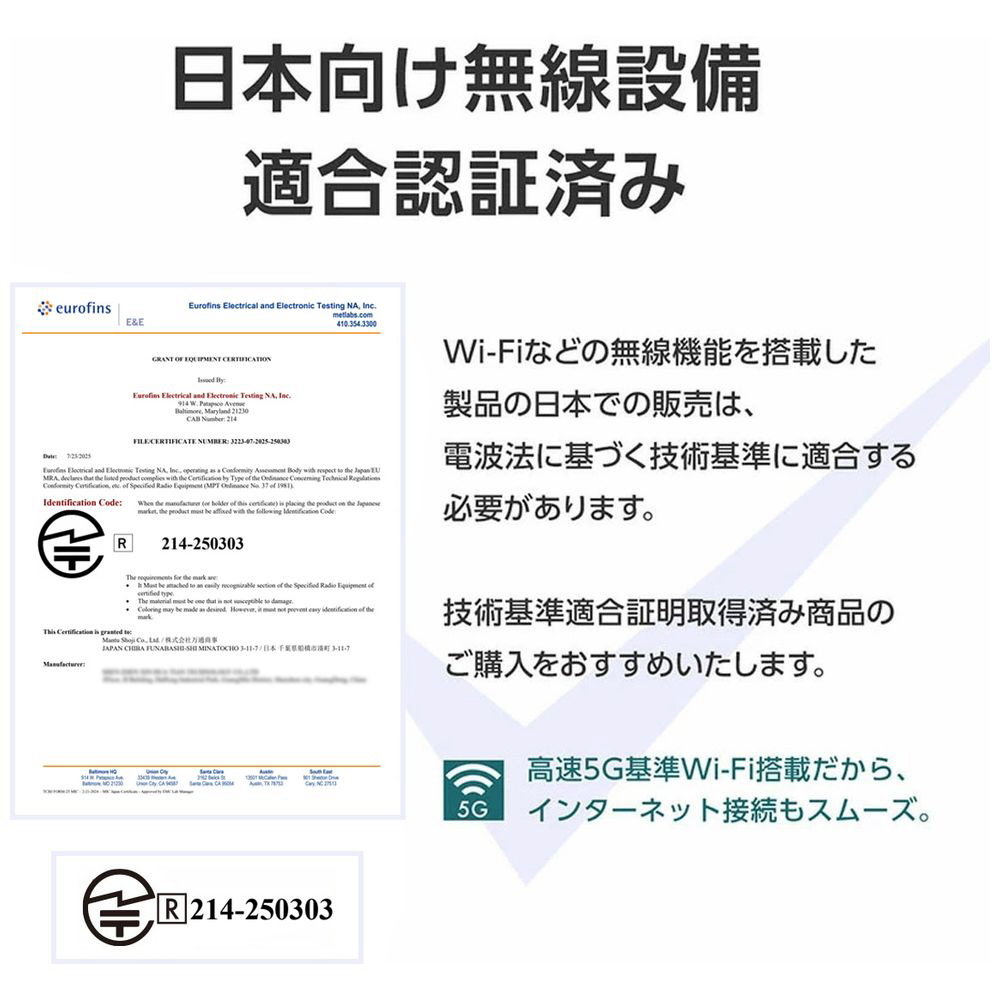 日本国内の技術基準に適合した無線設備として認証済み。電波法に準拠しているので、安心・安全にご使用いただけます。