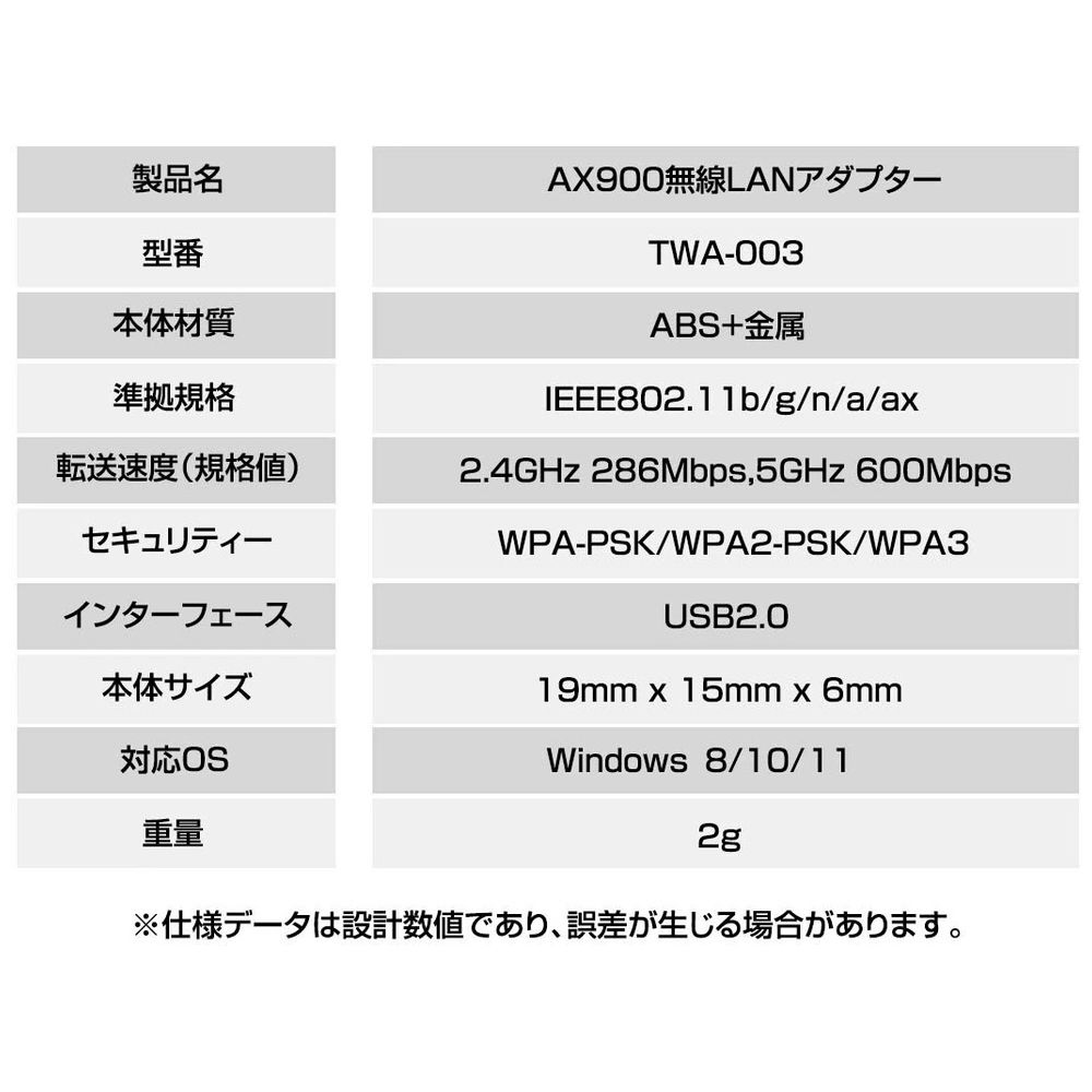TWA-003 無線LAN子機 USB-A接続 286+600Mbps (Windows11対応) [Wi-Fi 6(ax) /IPv6非対応]