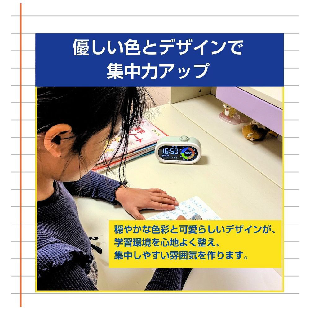 一目で分かる、管理しやすい、子どもの時間意識を育むカラフルなタイムマネージャー。勉強も生活リズムもサポートする目覚まし時計&勉強タイマー。Type-C充電式、日付・曜日表示、アラーム機能付きで小学生に最適。