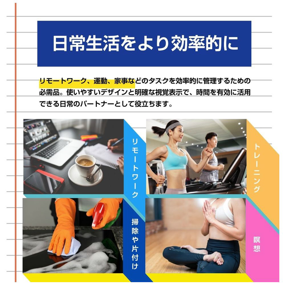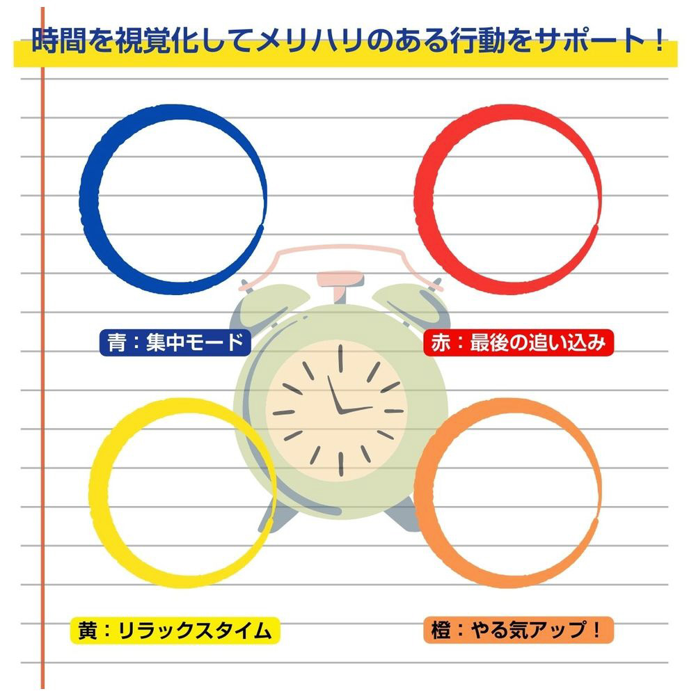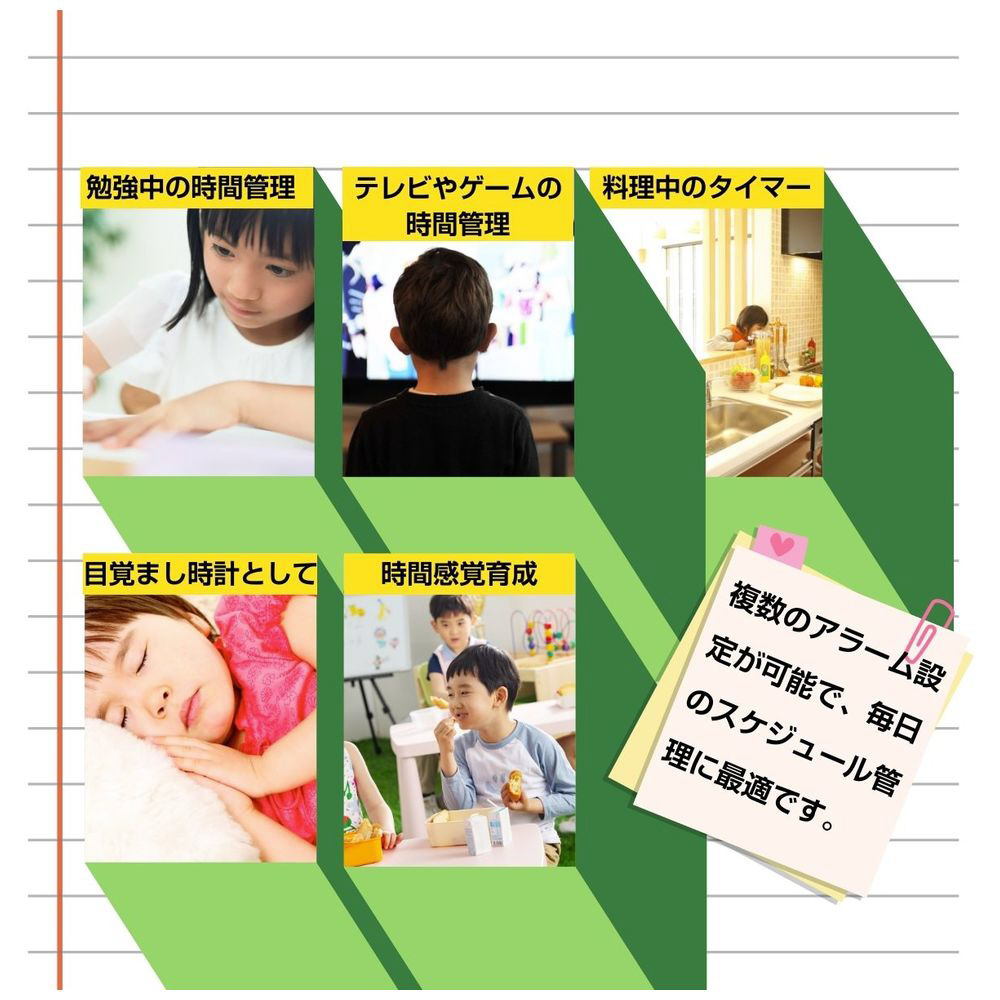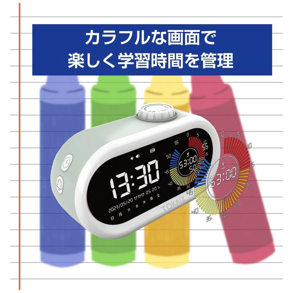 一目で分かる、管理しやすい、子どもの時間意識を育むカラフルなタイムマネージャー。勉強も生活リズムもサポートする目覚まし時計&勉強タイマー。Type-C充電式、日付・曜日表示、アラーム機能付きで小学生に最適。