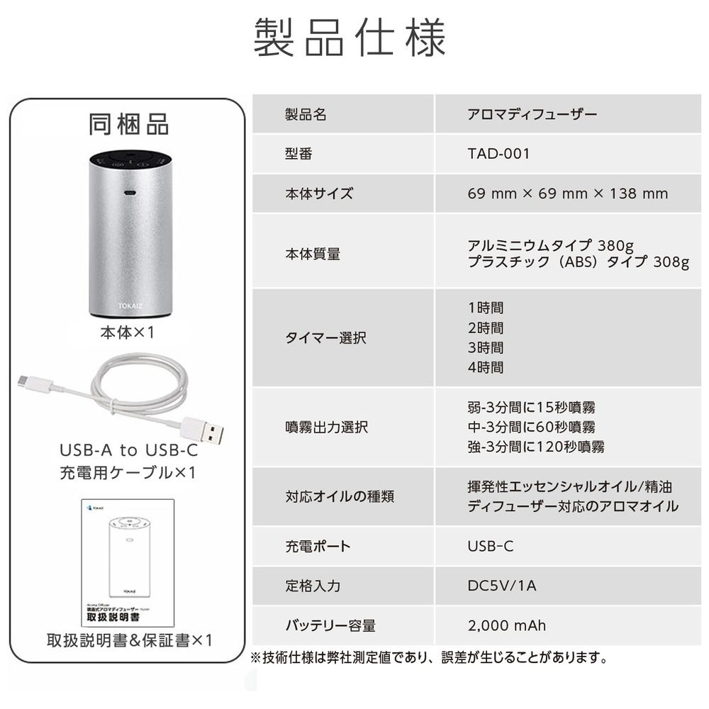 アロマディフューザー ブラック TAD-001