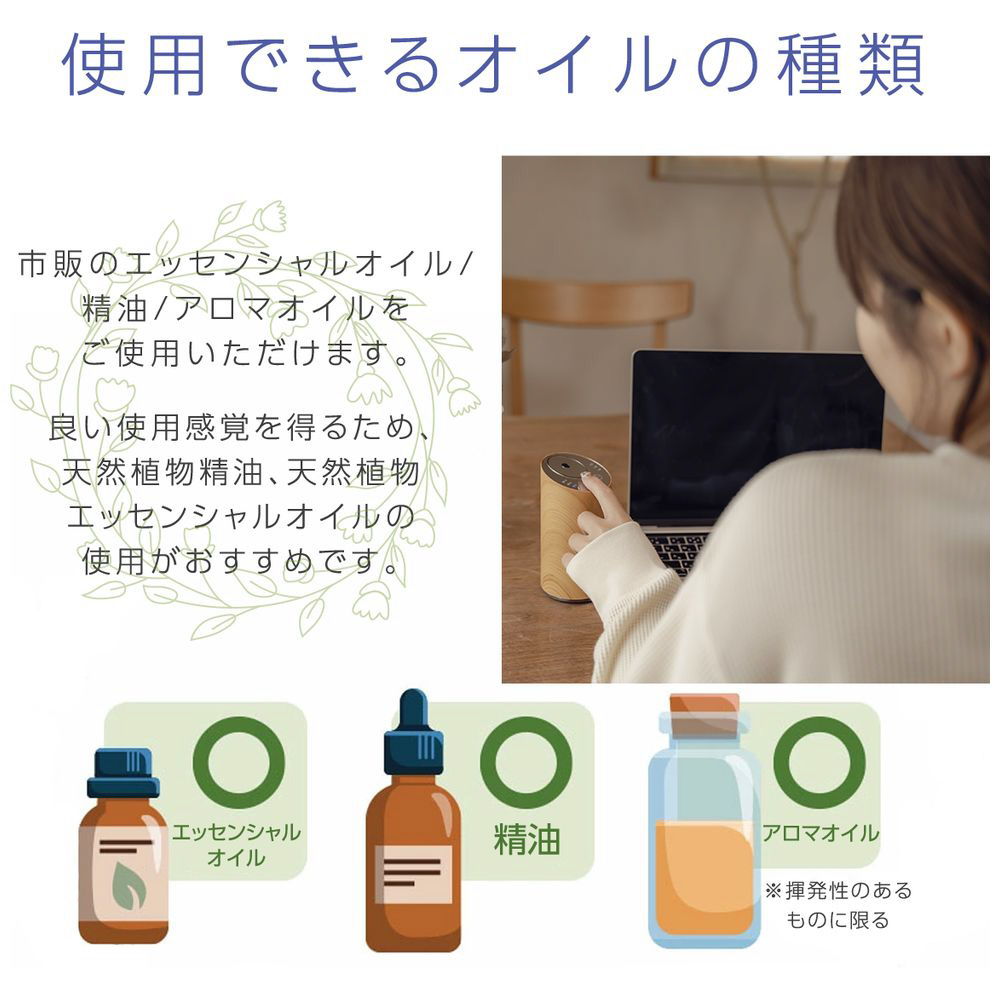 面倒な給水やお手入れが不要。精油やフレグランスをそのまま使用でき、清潔かつ手軽に香りを楽しめます。