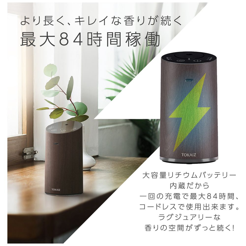 2000mAhのバッテリーを内蔵し、1回の充電で最長84時間コードレス使用可能。ラグジュアリーな香りをいつでもどこでも長く楽しめます。