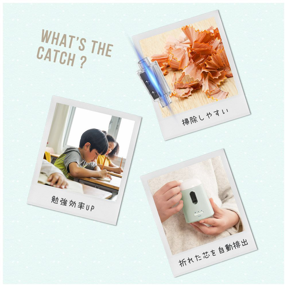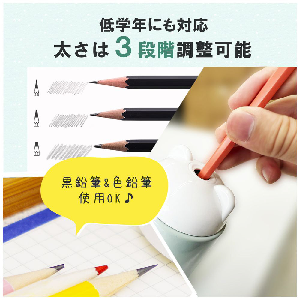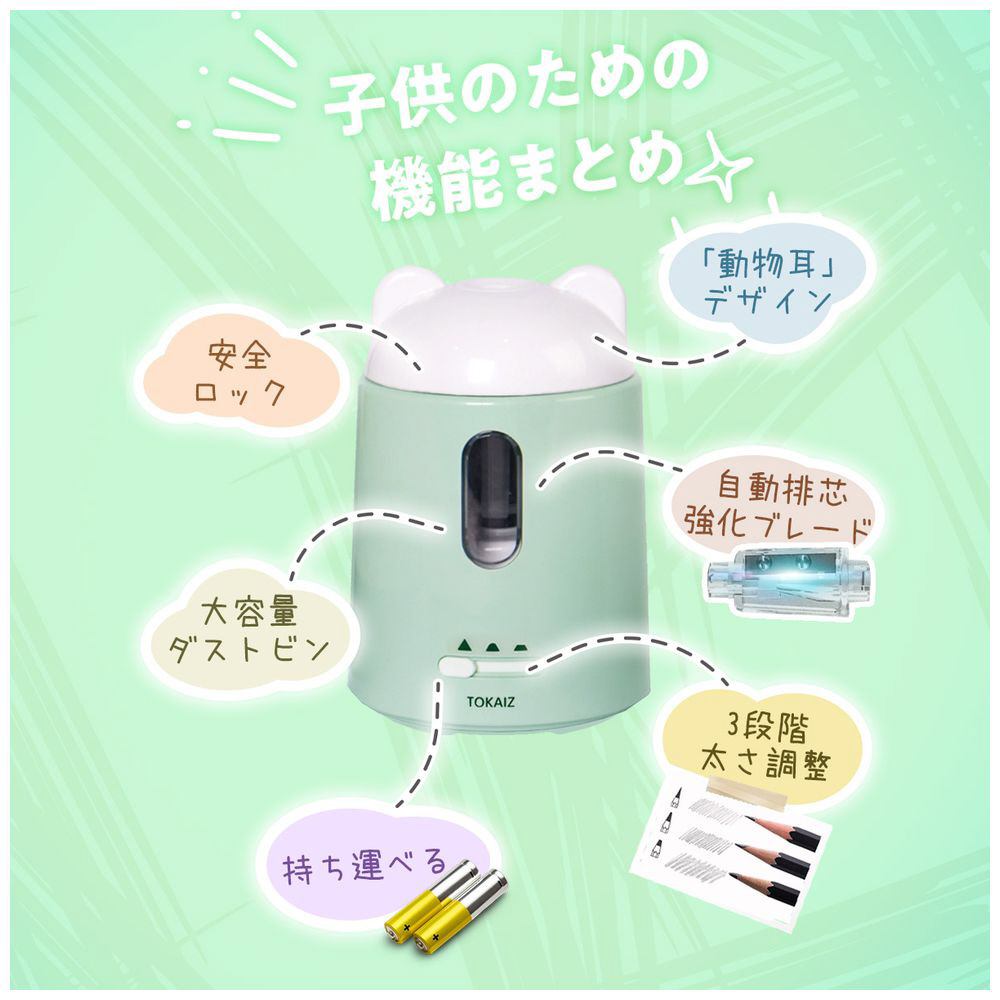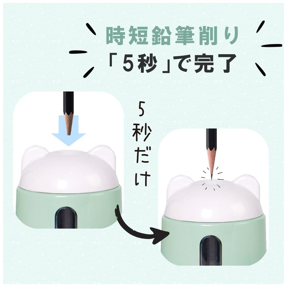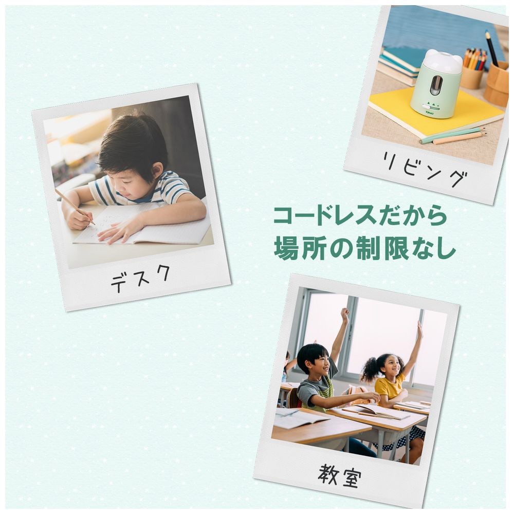 USB給電&電池対応の電動鉛筆削り。かわいいキャラクターデザインで子どもが大喜び!三角鉛筆も使えて芯先調整も可能。おしゃれで実用的だから、男の子も女の子も嬉しい。学校用や家庭学習、入学祝いのプレゼントにもぴったりです。