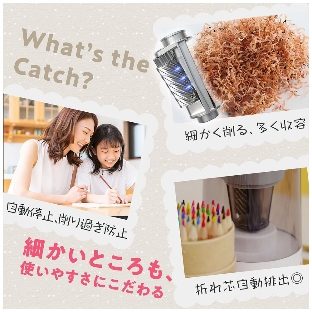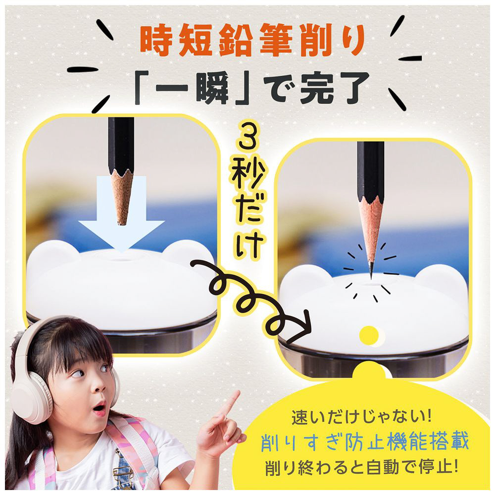完全自動でたった3秒!自動停止機能搭載、Type-C充電式で電池不要。折れ芯除去機能や3段階の太さ調節で無駄削りを防止。おしゃれなアニマル風デザインで、男の子・女の子にぴったりの子ども用文房具。入学祝いはもちろん、クリスマスや誕生日のギフトにも最適です!