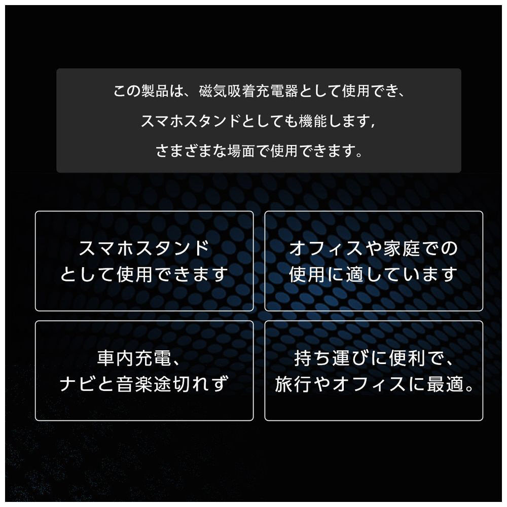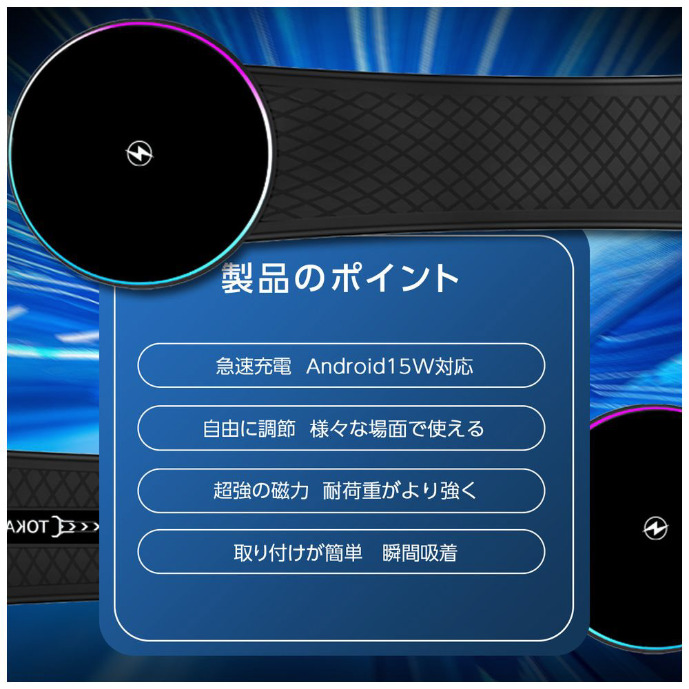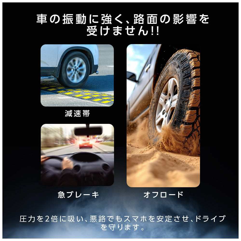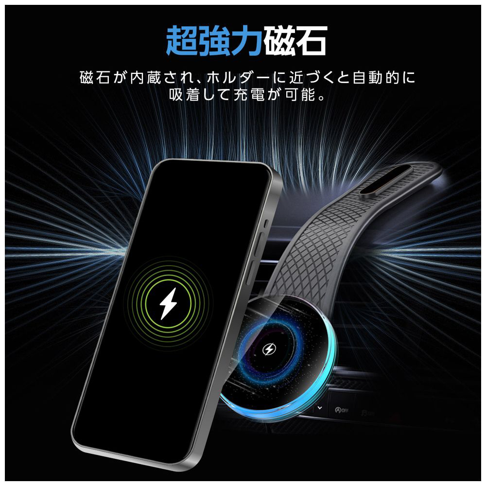 15W急速充電&52N超強力磁石でスマホを安定保持、片手操作で地図確認もスムーズ。設置場所を選ばず角度も自由に調整でき、快適なドライブをサポートします。
