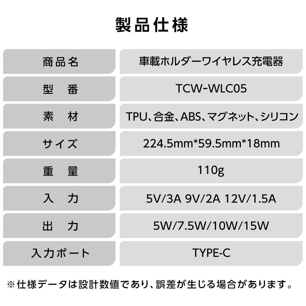 車載ホルダー ワイヤレス充電器 TCE-WLC05