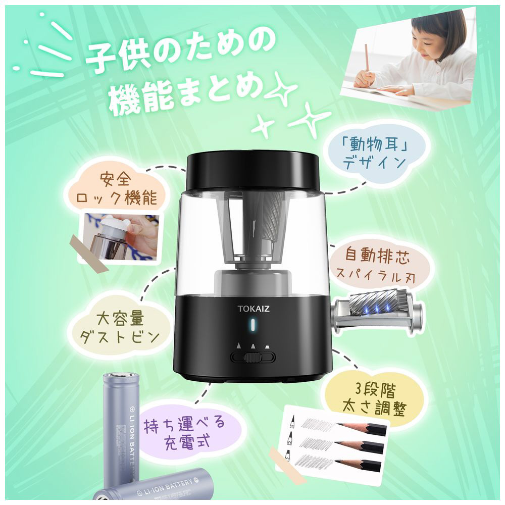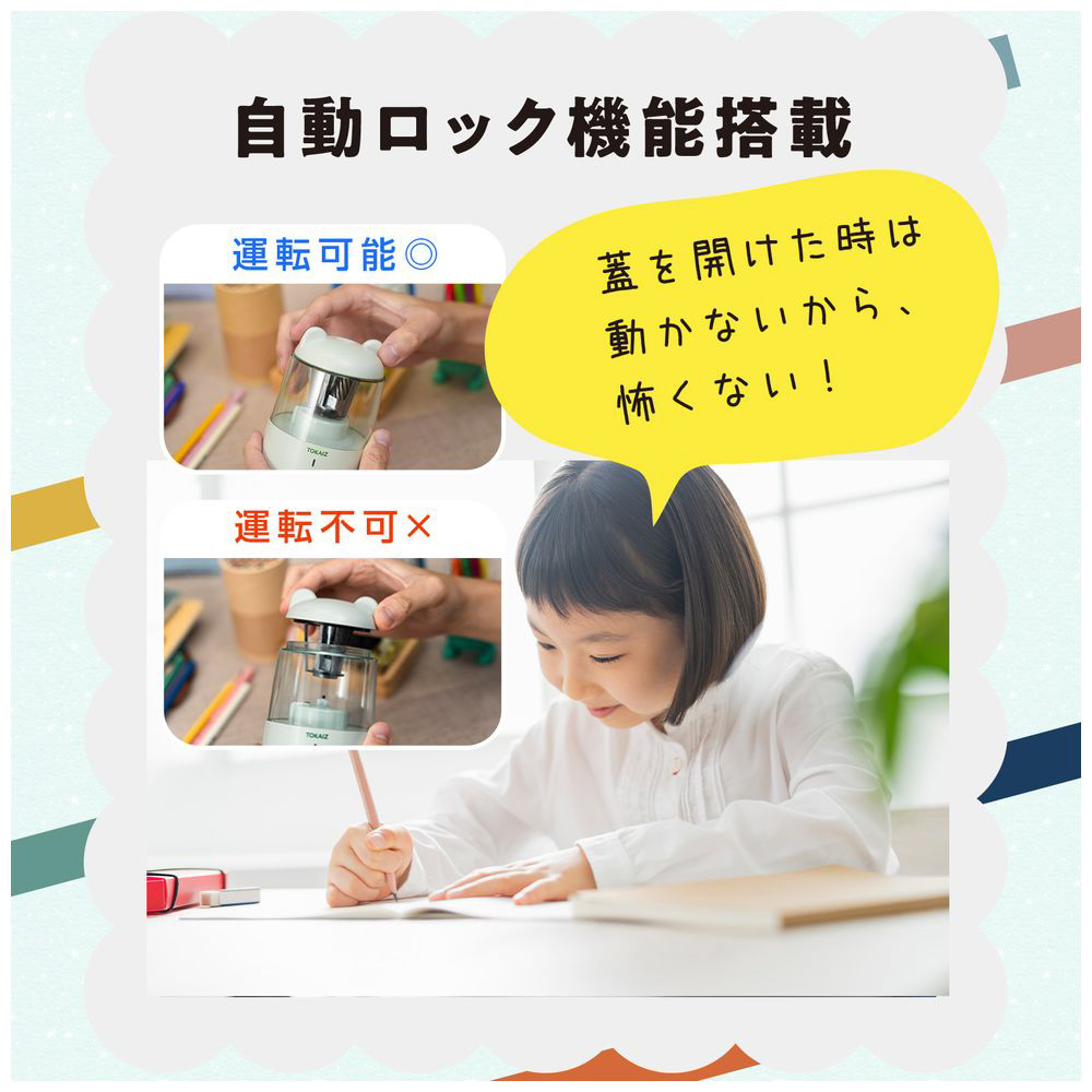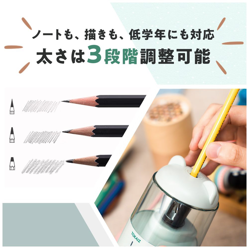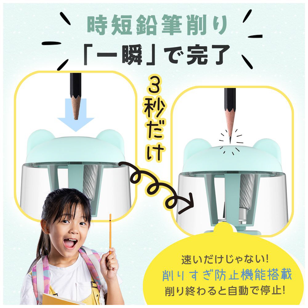 鉛筆を差すだけで一瞬できれいに削り上げ。毎日の手間を減らし、勉強や仕事の時間を効率化します。