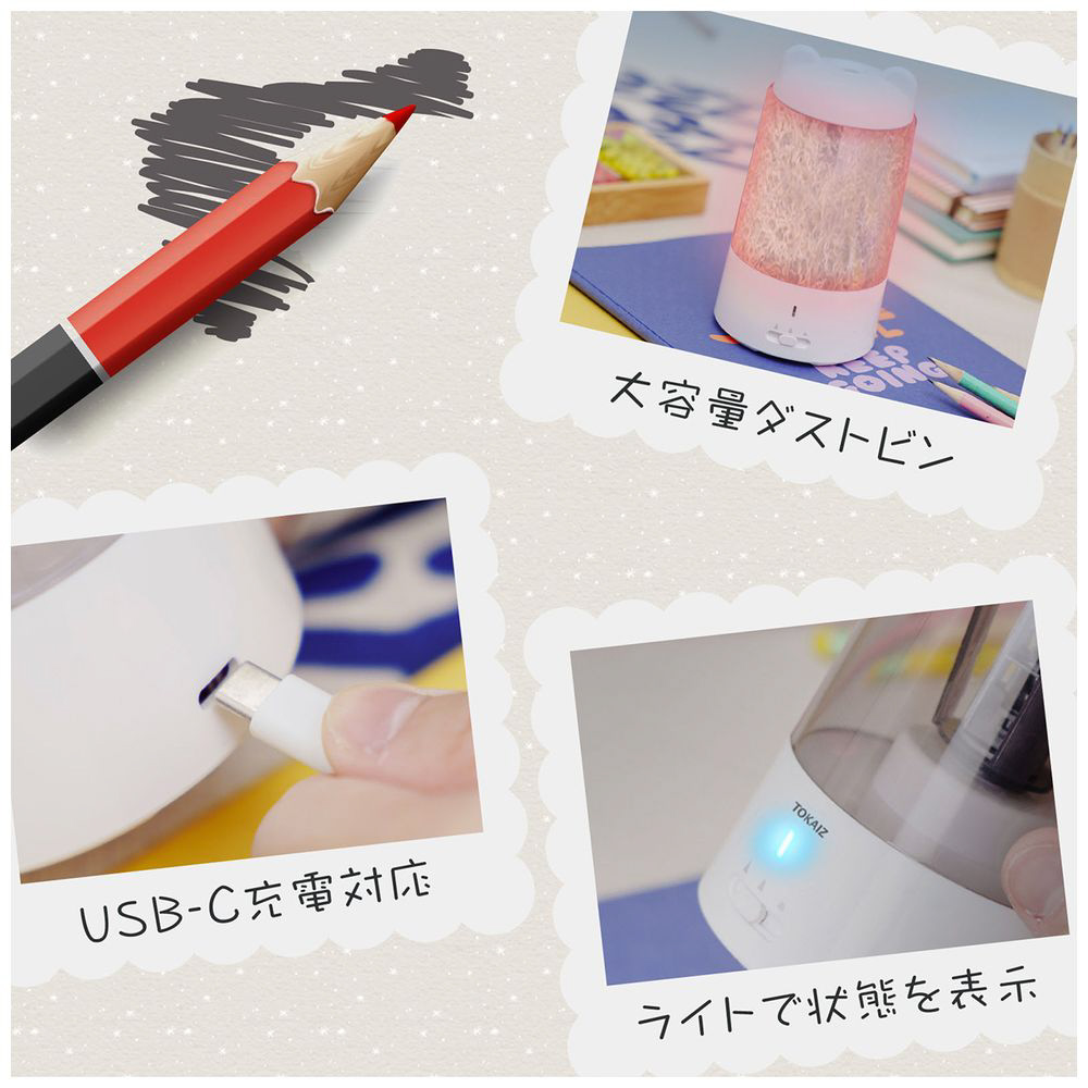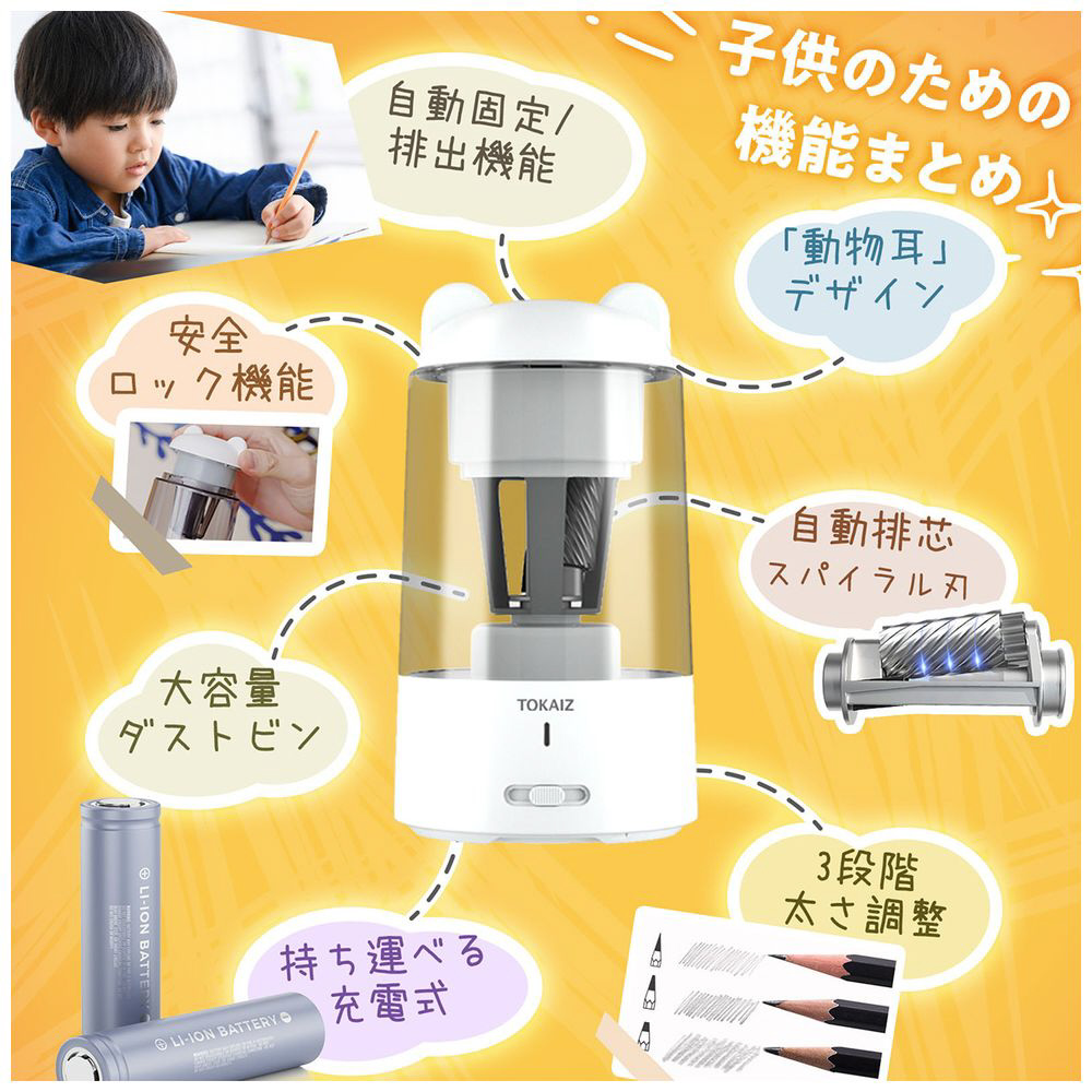 完全自動でたった3秒!自動停止機能搭載、Type-C充電式で電池不要。折れ芯除去機能や3段階の太さ調節で無駄削りを防止。おしゃれなアニマル風デザインで、男の子・女の子にぴったりの子ども用文房具。入学祝いはもちろん、クリスマスや誕生日のギフトにも最適です!