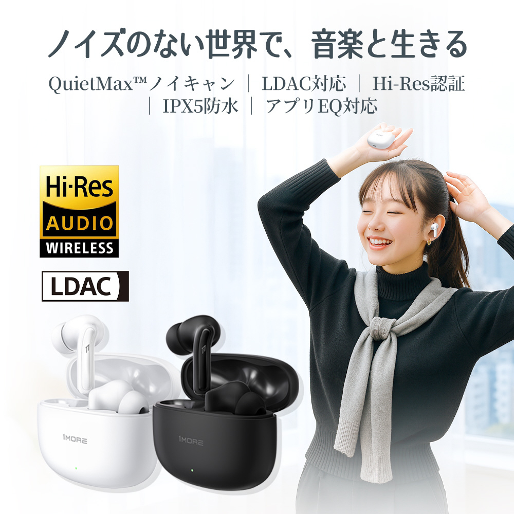 1MORE Q21は、LDACと12mmチタンドライバー搭載のハイレゾ対応ワイヤレスイヤホン。QuietMaxアクティブノイズキャンセリングで静寂と高音質を実現し、通勤・学習・ワークアウトまで幅広く活躍。IPX5防水と長時間再生で、日常からアウトドアまで快適な音楽体験を提供します。