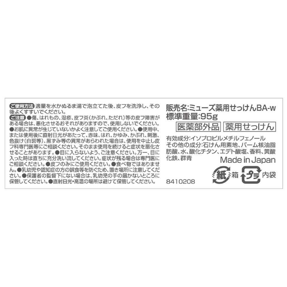 効能・効果: 体臭・汗臭及びにきびを防ぐ。皮膚の洗浄・殺菌・消毒。