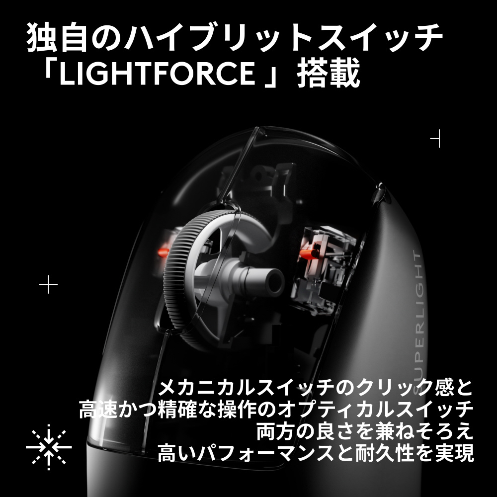 高度な性能で定評のある前機種「PRO X SUPERLIGHT」のアップデート版ゲーミングマウス。マウスの感度を示すDPIが前機種の25kから44kにアップデートした他、前機種を上回るバッテリー持続時間を実現。