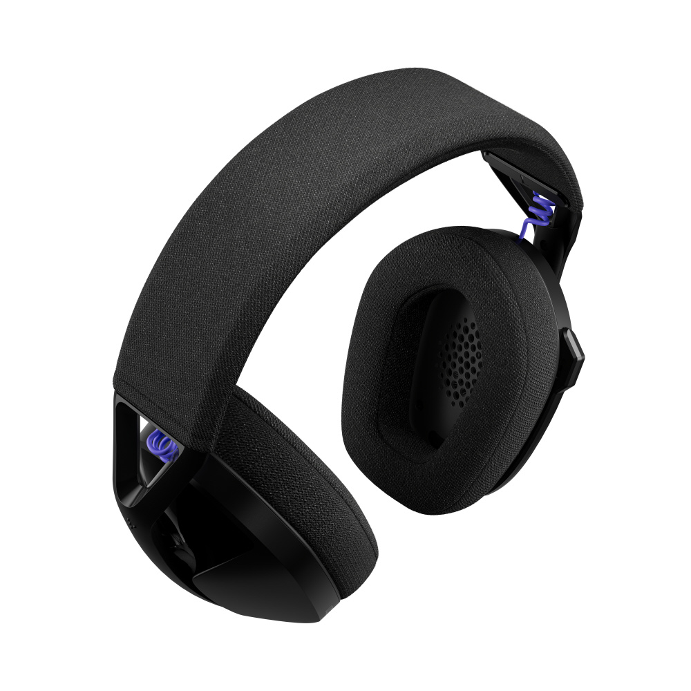 マイク付きワイヤレス ヘッドセットは、厚めのヘッドバンド、伸縮性の高いニット素材、低反発イヤーカップ採用、軽量で快適な装着感(210 g)を実現。